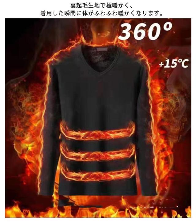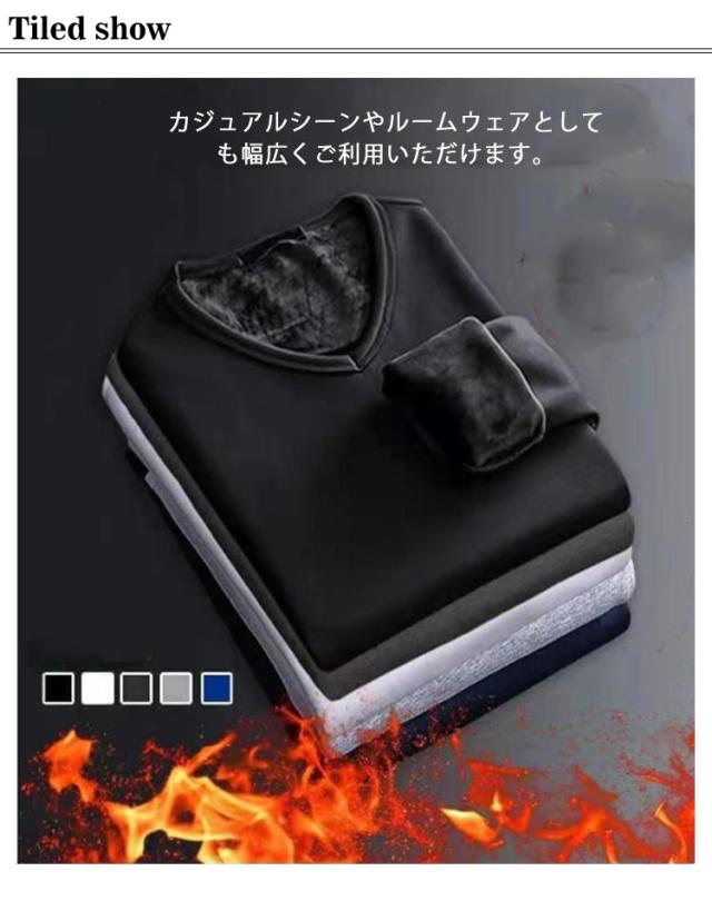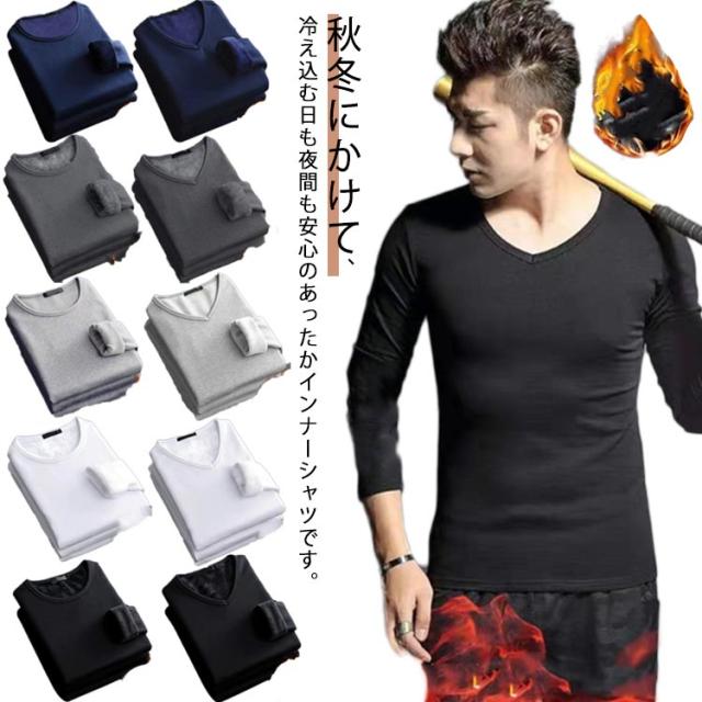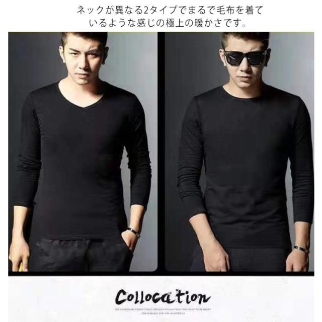 あったか 肌着 保温 Tシャツ 大きいサイズ カットソー インナー 秋冬 メンズ クルーネック Tシャツ 厚手 裏起毛 防寒着 スリム 発熱 アンダーウェア 長袖 Vネック