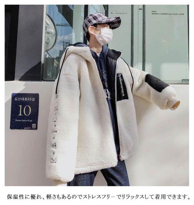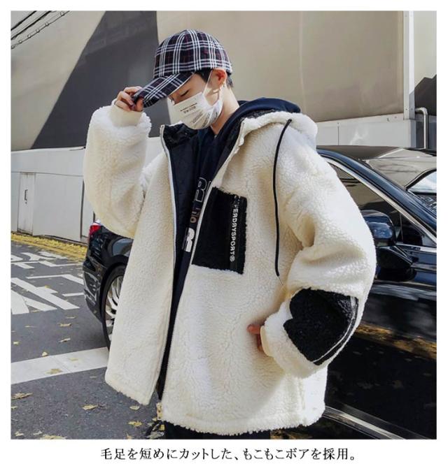 ボアコート メンズ ボアジャケット フリースジャケット 長袖 男子 防寒 厚手 ボアブルゾン ゆったり ジップアップ フード付き 前開き 冬 カジュアル アウター