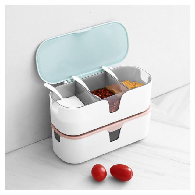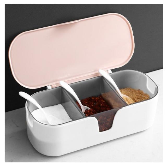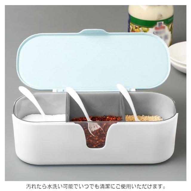 | 新生活を始められる方におすすめ便利の調味料入れ 乱雑になりがちな調味料をすっきりまとめてくれます。 3つ仕切り設計で、砂糖や塩などの調味料をスッキリと分けることができ、とても使いやすくて便利です。 スプーンが蓋に内蔵され、置き場所に困らないよう設計しております。料理作りをもっと楽しく快適に! 汚れたら水洗い可能でいつでも清潔にご使用いただけます。 | |