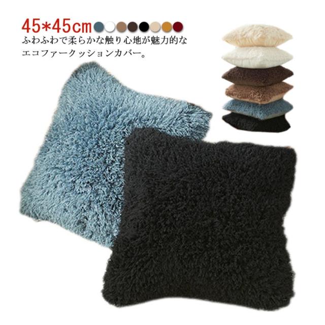 45×45cm 送料無料 ファークッションカバー 背当て カバー ふわふわ ギフト シャギー 北欧 おしゃれ かわいい 無地 フェイクファー 腰当て カバー 洗える あったか シンプル 起毛 正方形 ピロー エコファー 秋 冬 リビング 寝室 模様替え クッションカバー