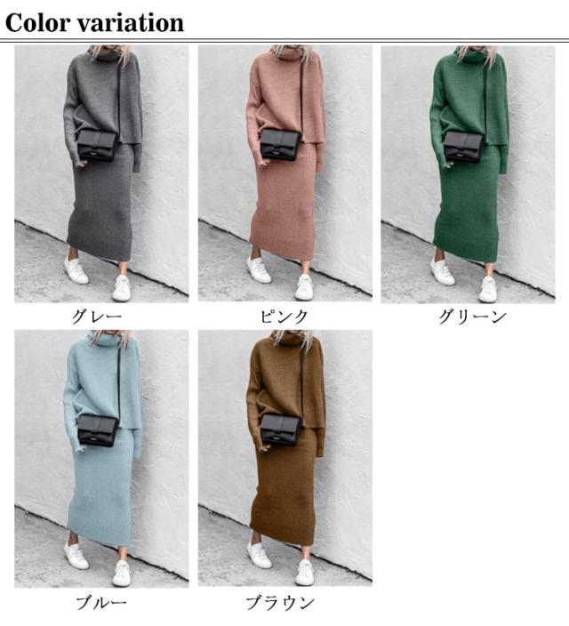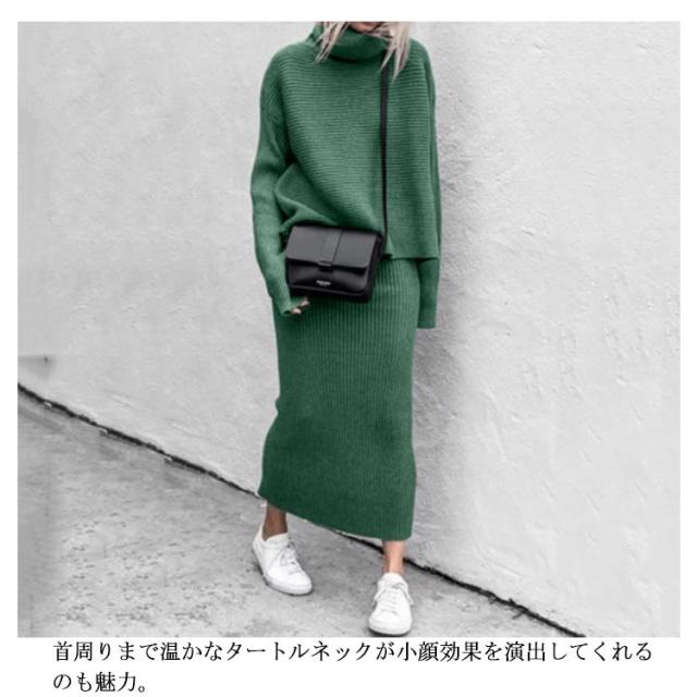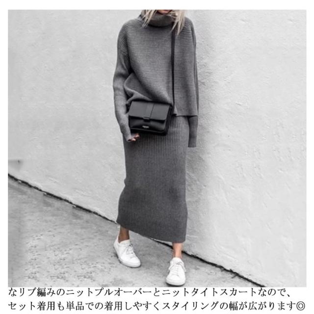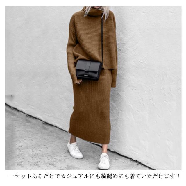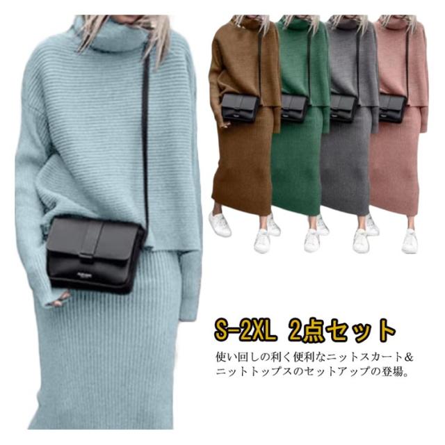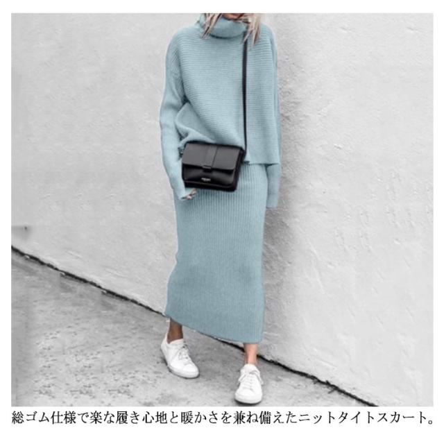 タイトスカート 【送料無料】ニット セットアップ 長袖 2点セット リブニット 通勤 タートルネック M プルオーバー カジュアル 春 秋 服 ニットスカート 無地 シンプル ニットセーター 大きいサイズ S XL L レディース