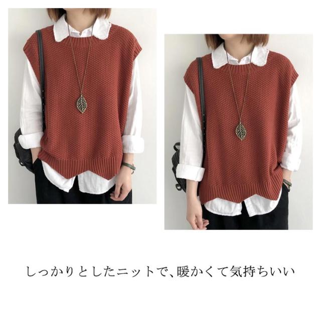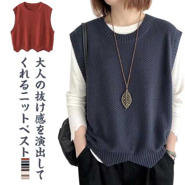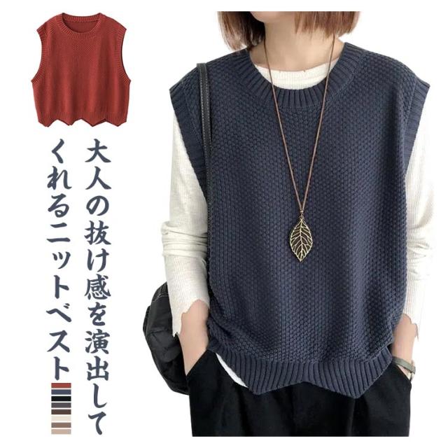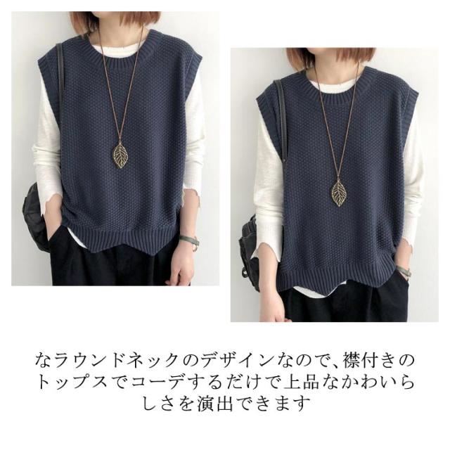 | 大人の抜け感を演出してくれるニットベスト。 ゆったりとしたシルエットでリラックス的な着心地になって、体型カバー効果も抜群です。 程よい軽みでお体に負担がなくて、伸縮性も良いから、素敵な着用感になります。 しっかりとしたニットで、暖かくて気持ちいい。 なラウンドネックのデザインなので、襟付きのトップスでコーデするだけで上品なかわいらしさを演出できます。 オフィスや通勤などでは洗練されたレディーになり、カジュアルなどの場合でも大人ヌケ感を引き出してくれて嬉しい。 | |