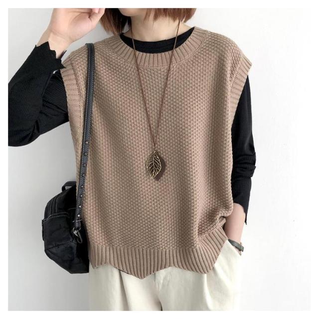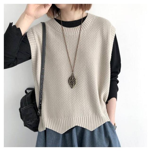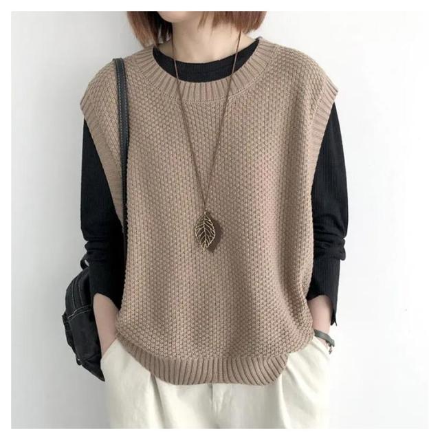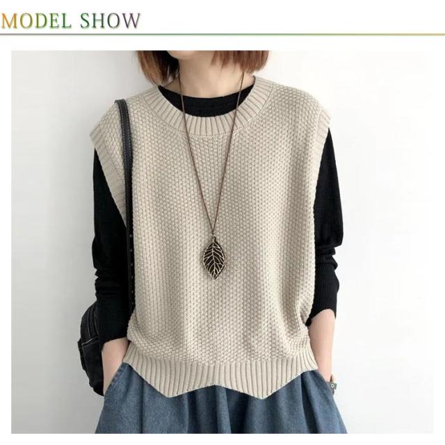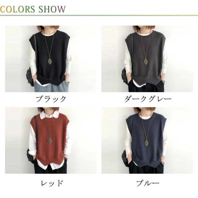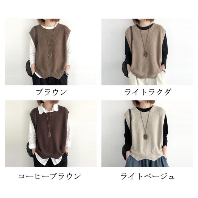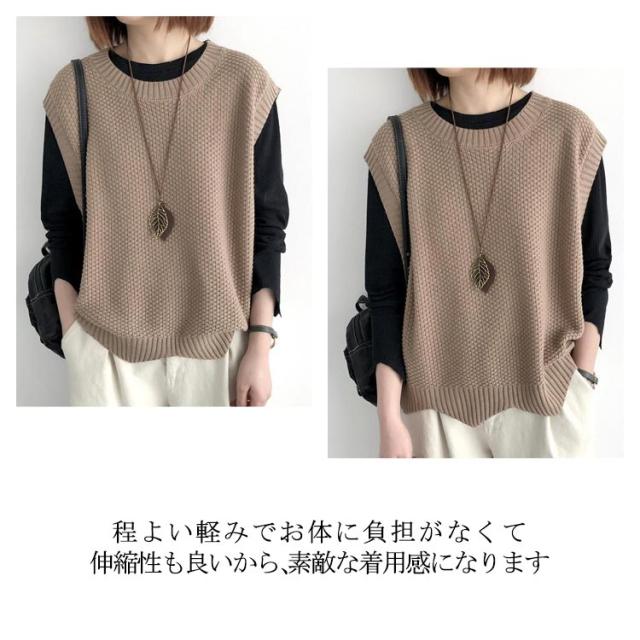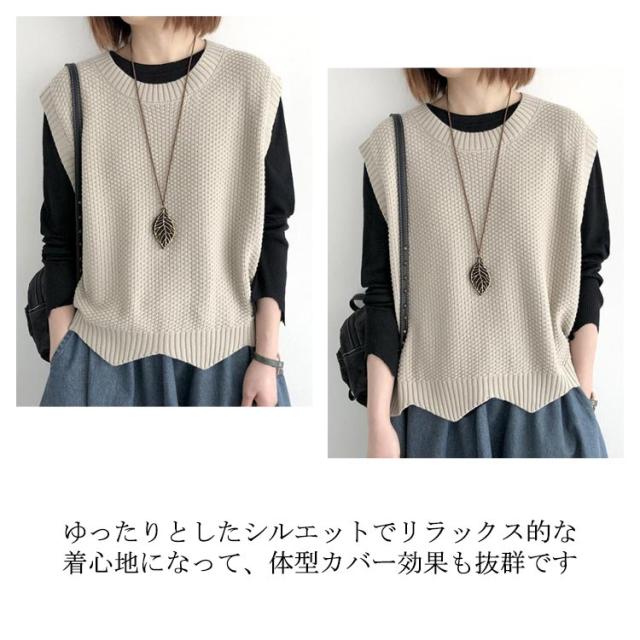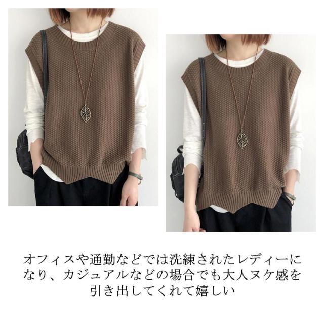 シンプル トップス ノースリーブ ニット プルオーバー レディース ベスト 大人 送料無料 サマー 着回し 体型カバー ベスト 春秋 タンクトップ クールネック カジュアル レイヤード 重ね着 おしゃれ
