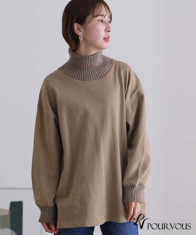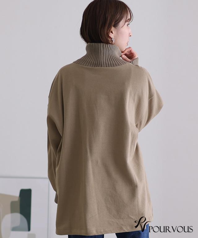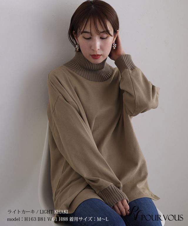 ニットドッキング裏起毛プルオーバー【531222226】20代・30代・40代・50代トップス・レディース・カジュアル・半袖・長袖・七分・ノースリーブ・肩出し・Vネック・シンプル・ニット・薄手・厚手・無地・刺繍・花柄・可愛い・伸縮性・キレイめ・着やせ・重ね着風・新作・レース・上品・セットアップ・ビジュー・体型カバー・スタイルアップ・小さいサイズ・3Lや4L・即日発送・送料無料・オフィス・ワーク・オールシーズン・デイリー・普段着・オケージョン・セミフォーマル・婚活・顔合わせ・同窓会・お呼ばれ・食事会・謝恩会・親族・七五三・お宮参り・冠婚葬祭・弔事・女子会・デート・入学式・卒業式・入園式・ママ