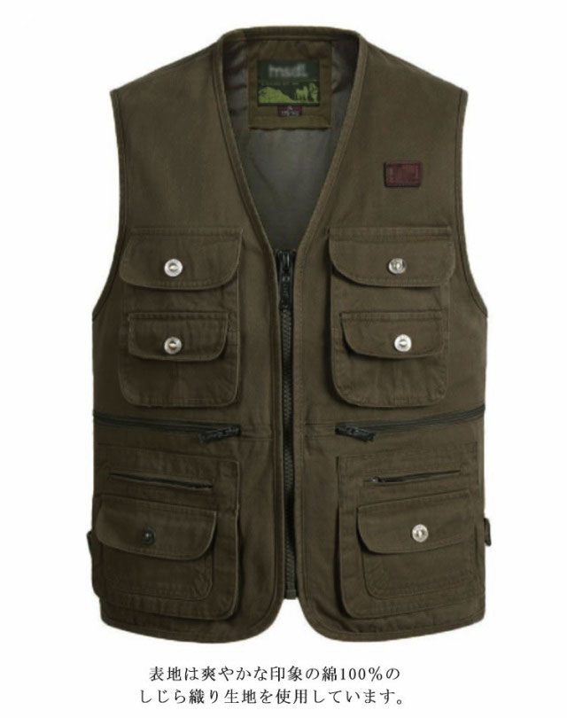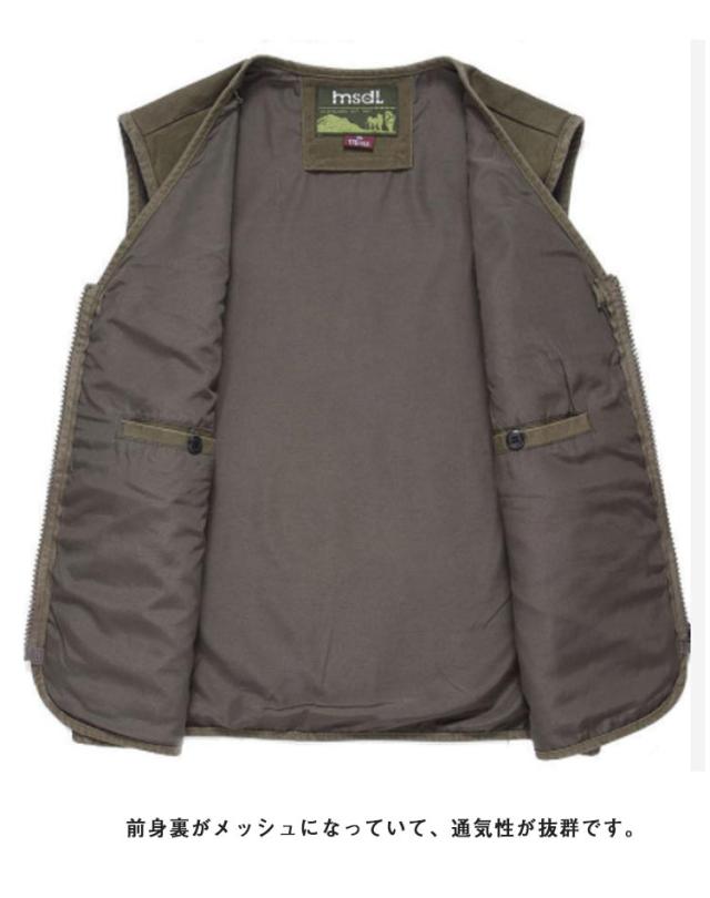 | 爽やかな着心地の綿100%しじら織りベスト 通気性に優れ、清涼感のある裏メッシュ仕様 旅行にお出掛けに一着あると重宝します 表地は爽やかな印象の綿100%のしじら織り生地を使用しています。 前身裏がメッシュになっていて、通気性が抜群です。 フロントファスナーの左右にあるベンチレーションファスナーを開ければ 更に通気性がアップします。 ポケットが4つ付いて収納力抜群です。 これからの季節にお薦めの一着です。 | |