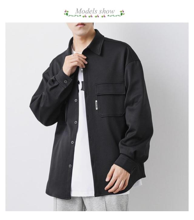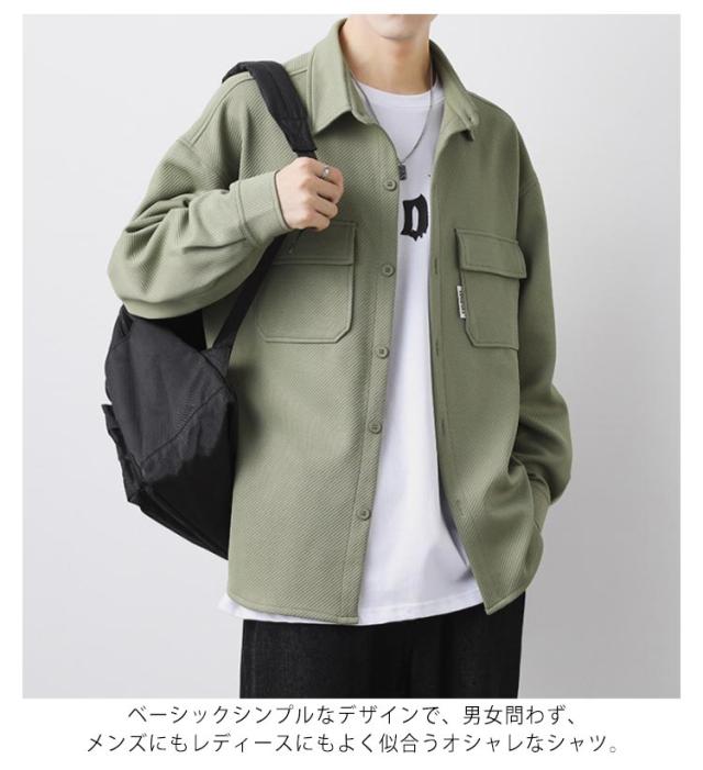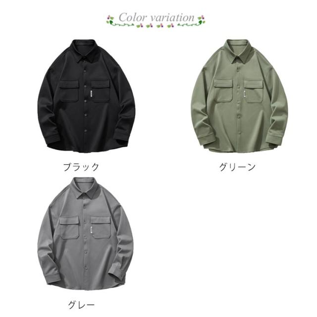 送料無料 とろみシャツ 長袖 開襟 シャツ カジュアルシャツ 無地 ドロップショルダー ビッグシルエット ゆるシャツ ワークシャツ トップス カジュアル 羽織 シンプル ゆるシャツ 春服 韓国ファッション ストリート系 メンズ