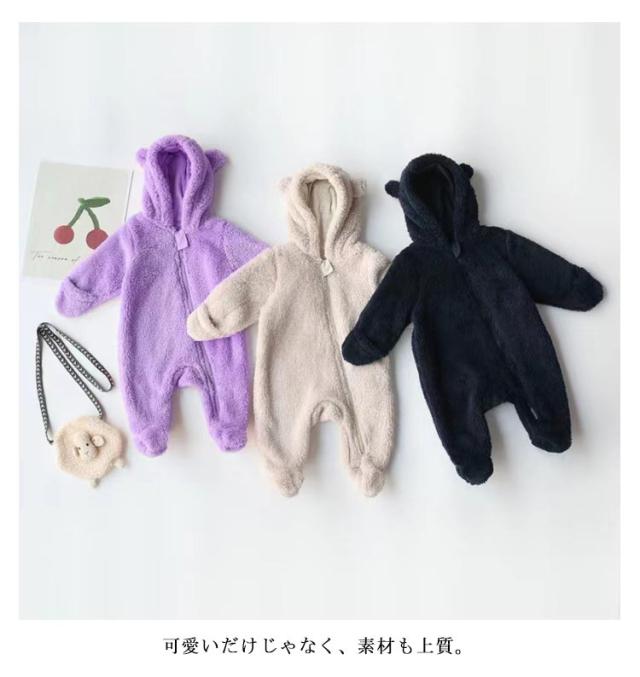 年賀状 くまさん ボアジャンプスーツ コットン きぐるみ 女の子 赤ちゃん ロンパース カバーオール ベビー服 女子 新生児 男の子 新生児 くま 男子 プレゼント 冬 秋 防寒 着ぐるみ ジャンプスーツ 60 70 裏起毛
