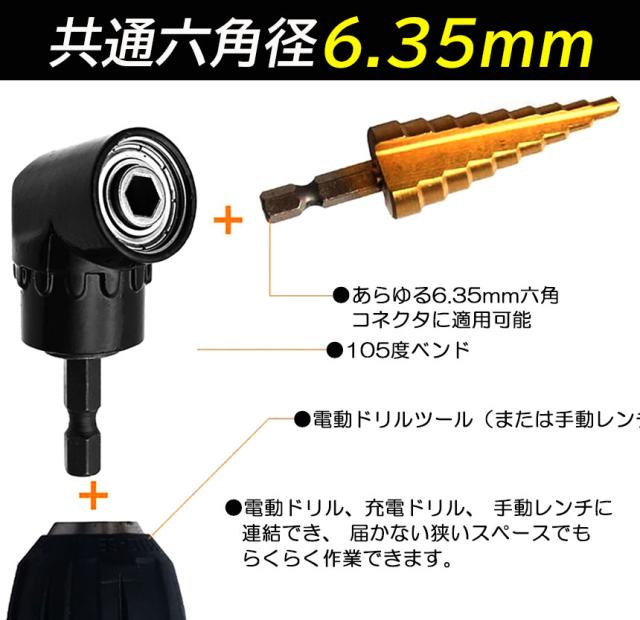 【4点セット】105° アングル延長1/4インチ 6mm 六角ドリルビットドライバーソケットホルダーアダプター、1/4インチ六角ドライブシャフトはクイックチェンジ対応で、ほとんどの電動ドリル、充電式ドリル、マニュアルレンチ、ドライバーチャックに適合します。磁気1/4インチ六角ソケットは標準的なドリルとドライバービットを受け入れ、保持します。【使用可能】電動ドライバーで様々な先込み角のソケットを装着し、ボルトやナットの締め外しができます。インパクトドライバー用のソケットアダプタセットです。壁際や狭所等の作業環境に最適です。