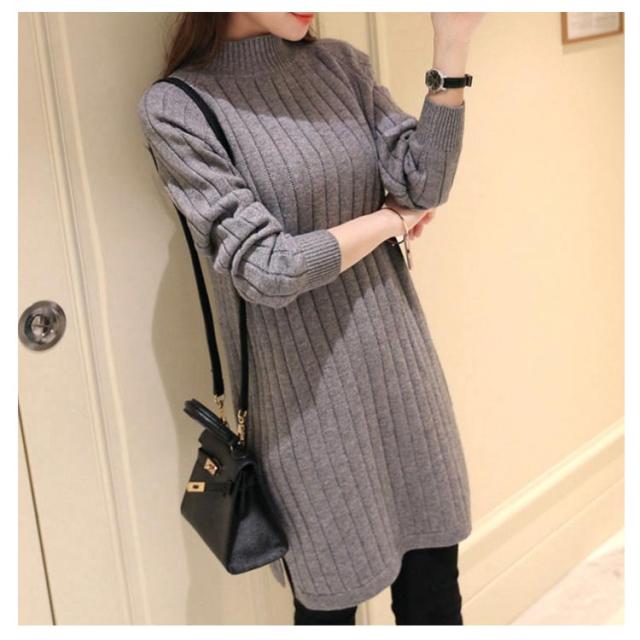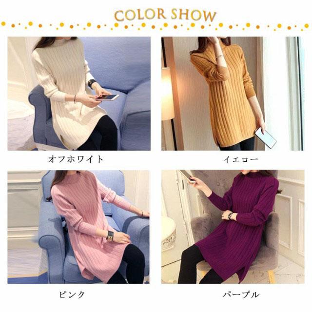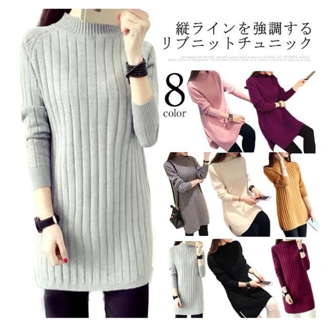 ボトルネック ニット チュニック レディース リブニット ニットチュニック 長め セーター ハイネック 長袖 無地 送料無料 トップス 秋冬服 20代 30代 40代 カジュアル キレイめ