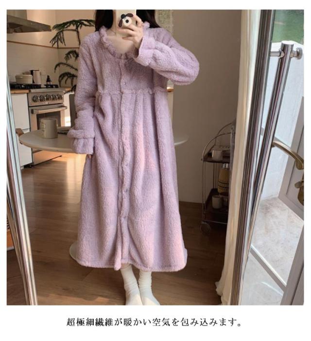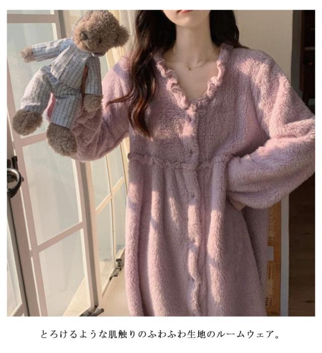 パジャマ レディース もこもこ 可愛い ルームウェア ルームワンピース 送料無料 ナイトウェア 寝巻き ロング丈 かわいい 部屋着 厚手 長袖 寝間着 女性用 柔らかめ リラックス ワンピース