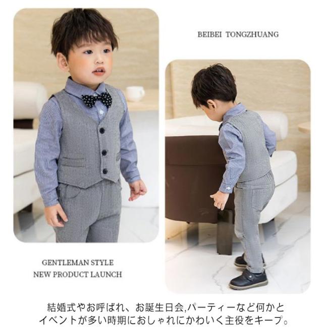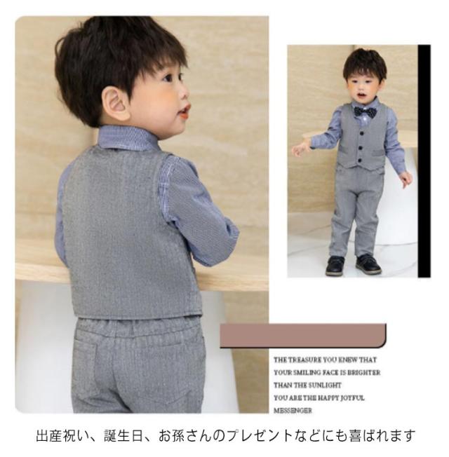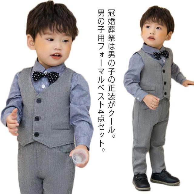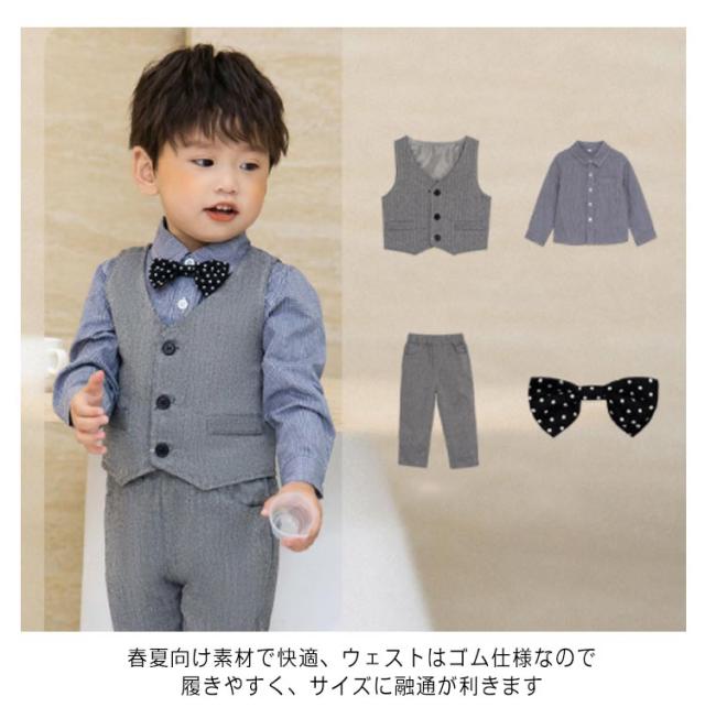 | 冠婚葬祭は男の子の正装がクール。男の子用フォーマルベスト4点セット。 春夏向け素材で快適、ウェストはゴム仕様なので履きやすく、サイズに融通が利きます 結婚式やお呼ばれ、お誕生日会,パーティーなど何かとイベントが多い時期におしゃれにかわいく主役をキープ。 ボリュームを持たせているので、甘くなりすぎずスタイル良く見せてくれます。 出産祝い、誕生日、お孫さんのプレゼントなどにも喜ばれます | |