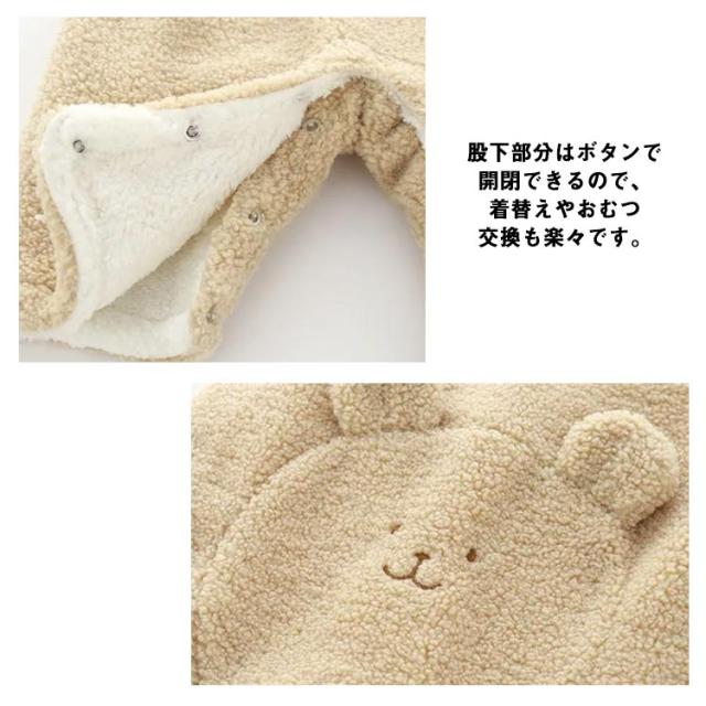 | っと起毛感のある暖かいフリース素材が、赤ちゃんを優しく包み込むフリースカバーオールです。 もこもこのフリース生地、肌触りは柔らかで着心地抜群!着るだけで体がすぐ暖かくなります。 股下部分はボタンで開閉できるので、着替えやおむつ交換も楽々です。 出産祝いやお誕生日などのプレゼントにもおすすめ。 | |