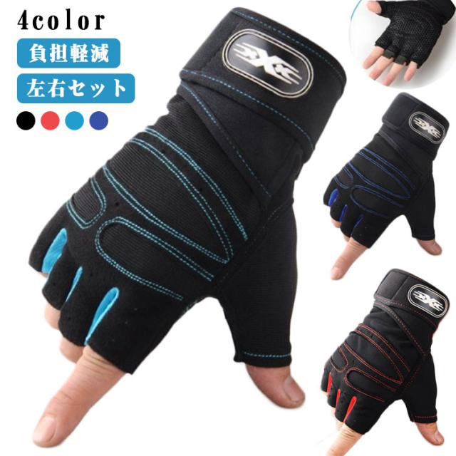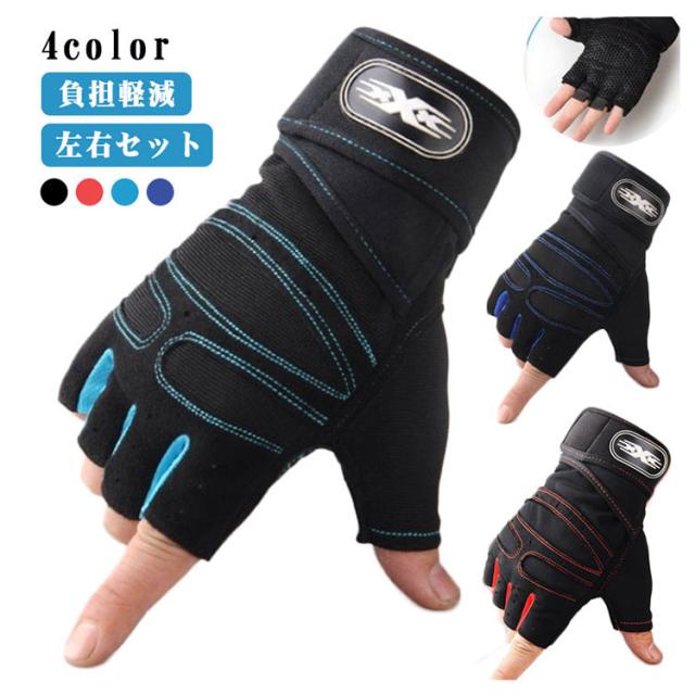 バーベル 左右セット ジム グローブ 筋トレ メンズ 筋トレ パワーグリップ レディース トレーニンググローブ 保護 負担軽減 軽量 通気性抜群 送料無料 フィンガーレス マジックテープ すべり止め