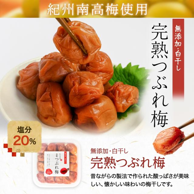 無添加 梅干し 高級 紀州南高梅 [ 昔ながらの酸っぱい味 塩分20% ] 大粒 完熟南高梅 白干し梅 つぶれ梅 国産 訳あり 400g