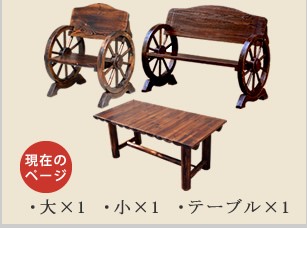 | 車輪ベンチ&焼杉テーブル3点セット (ベンチ大×1 ベンチ小×1 テーブル×1) |