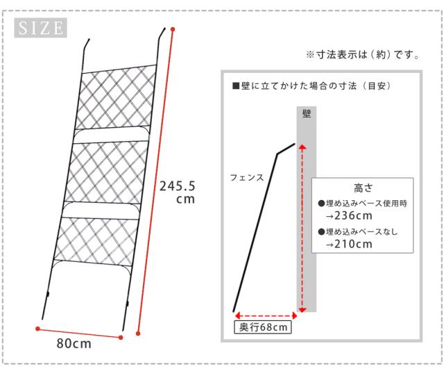 | ・必ずご使用になりたい場所のサイズを測ってからご購入ください。 ・立てかけるだけの場合、強風により転倒の恐れがございます。お客様自身で固定いただきますようお願いいたします。 ・アパート・マンションの規約により、背の高い設置物が認められていない場合があります。ご確認の上、ご購入をお願いいたします。 |