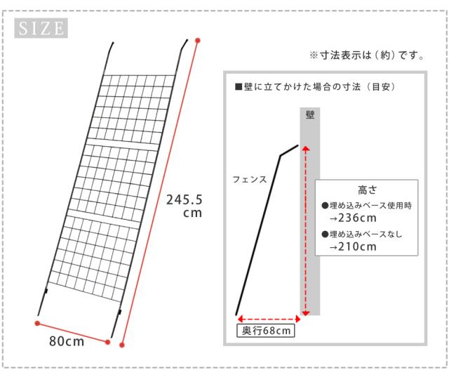 | ・必ずご使用になりたい場所のサイズを測ってからご購入ください。 ・立てかけるだけの場合、強風により転倒の恐れがございます。お客様自身で固定いただきますようお願いいたします。 ・アパート・マンションの規約により、背の高い設置物が認められていない場合があります。ご確認の上、ご購入をお願いいたします。 |