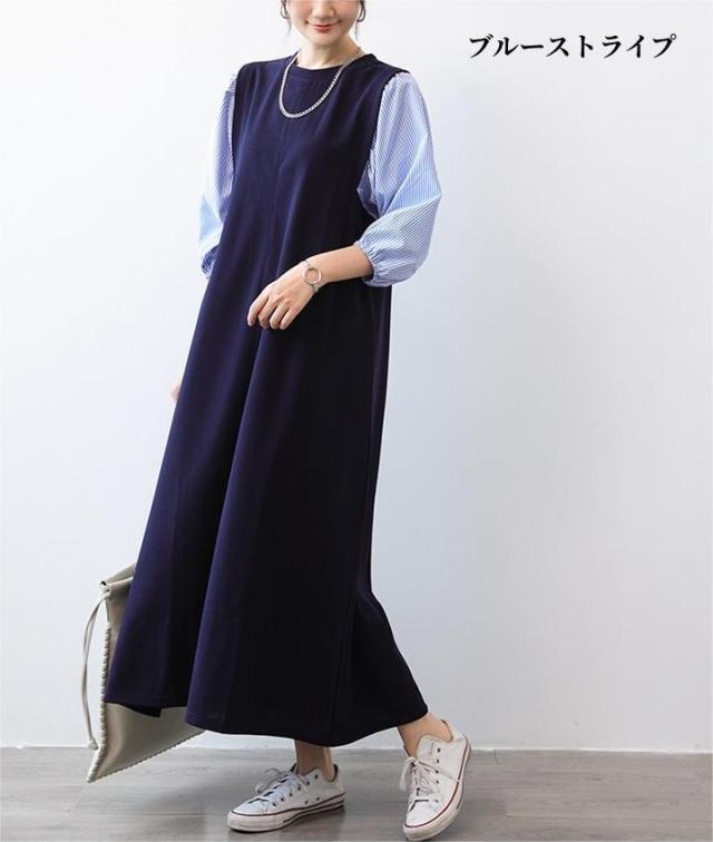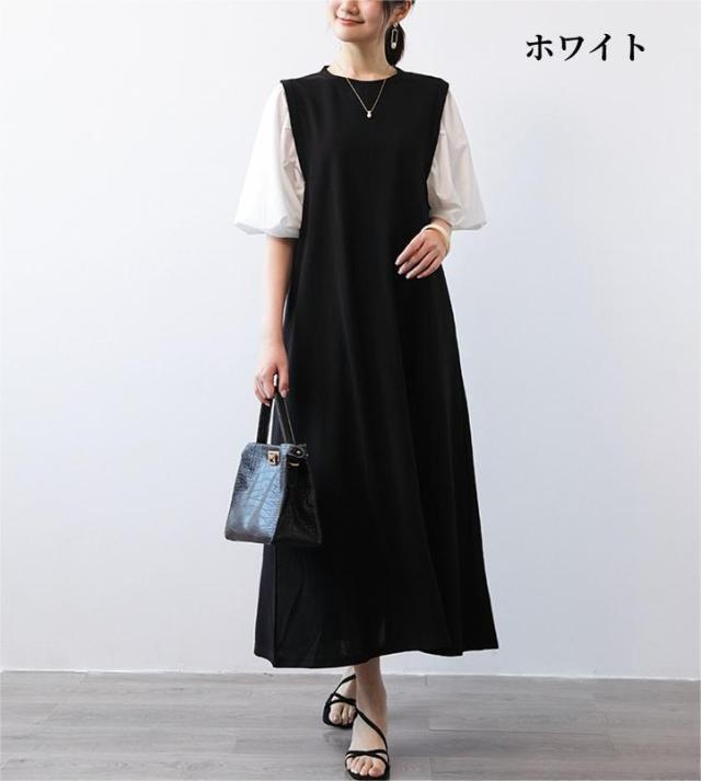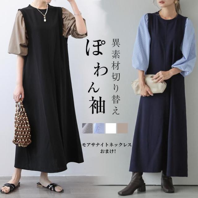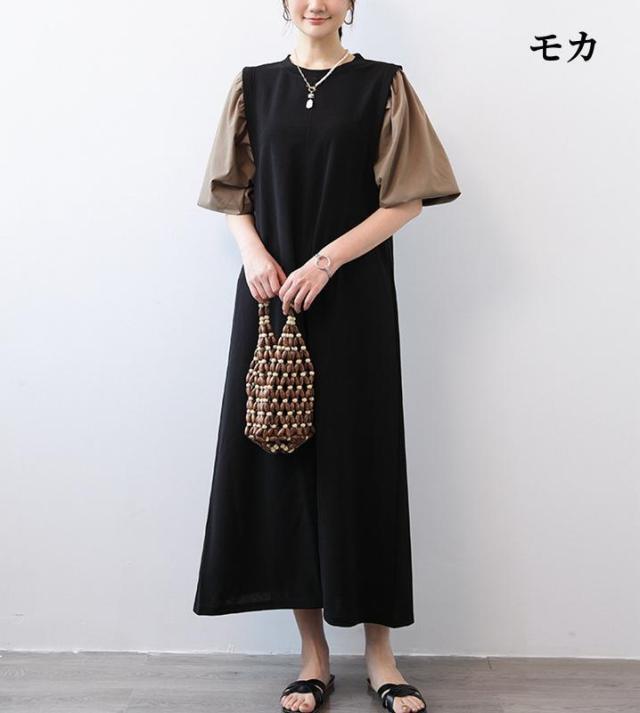 ワンピース ハーフジップワンピース ロングワンピース ボリューム袖 ハーフジップ ロング丈 送料無料