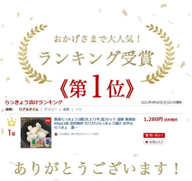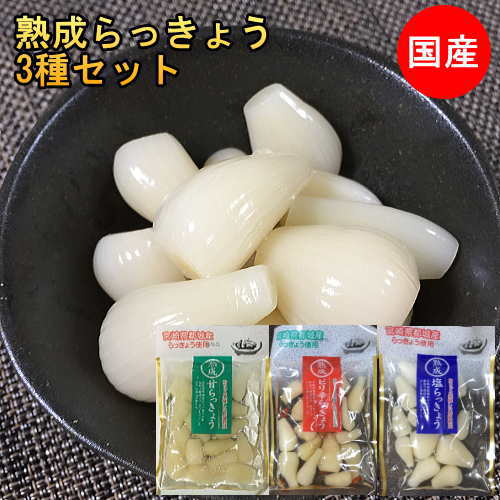 熟成らっきょう3種 ごはんのおとも ポイント消化 (甘,ピリ辛,塩)セット 国産 無添加 80gx3袋 送料無料 カリカリらっきょう漬け らっきょ 漬け物 メール 便 ギフト プチギフト 贈り物 お中元