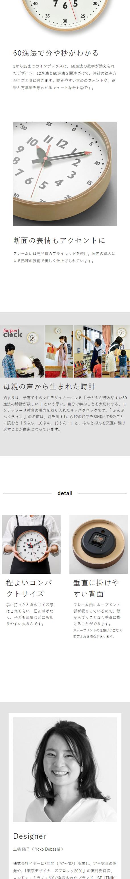 いま何時?を親子で確認 読めた!が楽しい知育時計 子どもの時計学習に役立つ、アナログ式の知育時計『 Lemnos ふんぷんくろっく Sサイズ 』。いま何分?がわかるようにインデックスに60進法の数字を表示し、5分ごとに「 ふん 」「 ぷん 」と交互になる読み方も含めて、正しい理解へと導きます。大人になっても使えるシンプルなデザインで、子ども部屋に適した10インチサイズ。ママでもあるデザイナーの視点と子どもたちの意見、モンテッソーリ教育が融合したウォールクロックです。