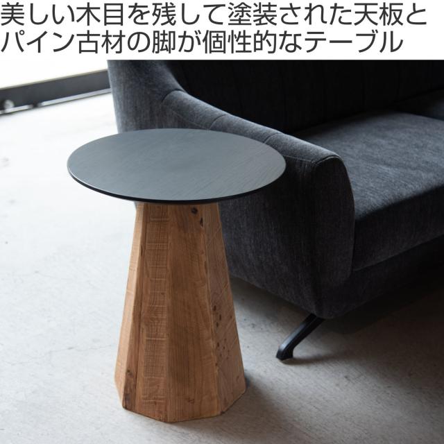 木目を残して塗装された天板とパイン古材の脚が個性的なテーブル