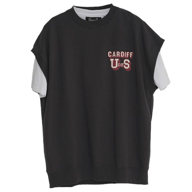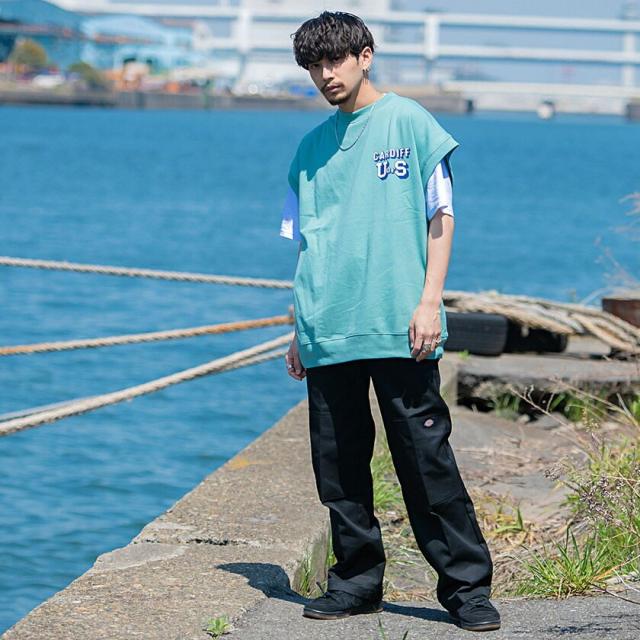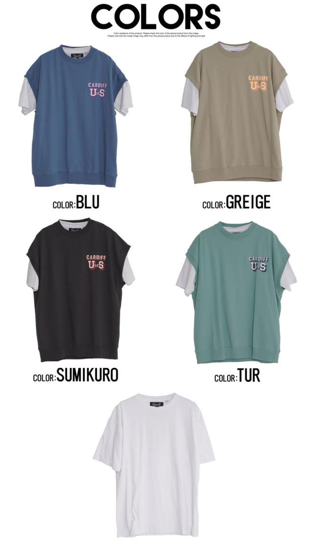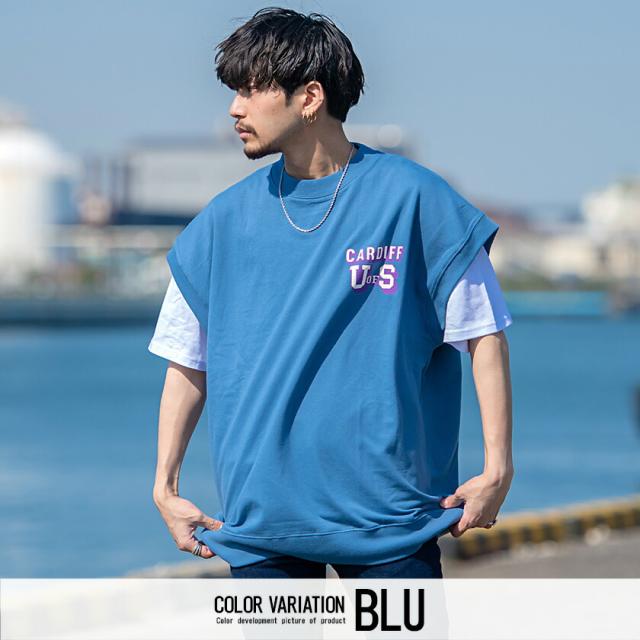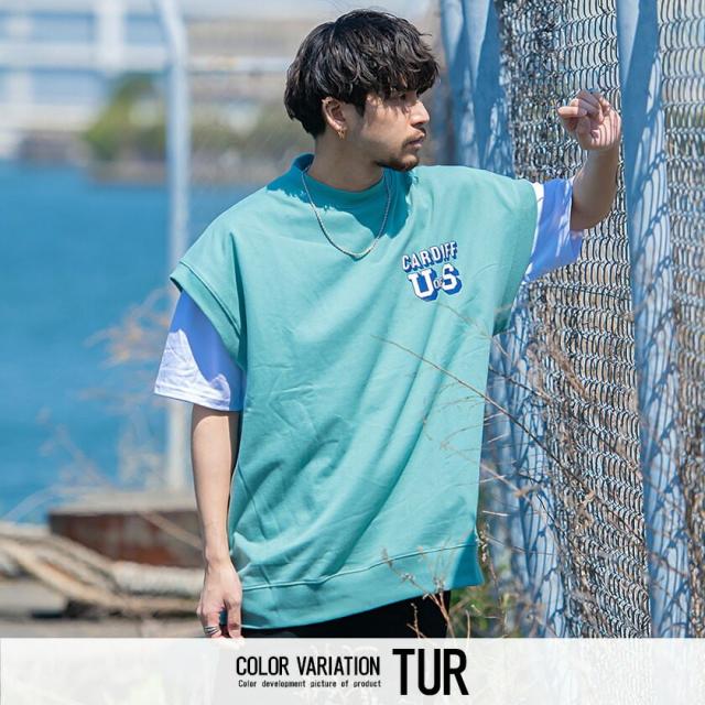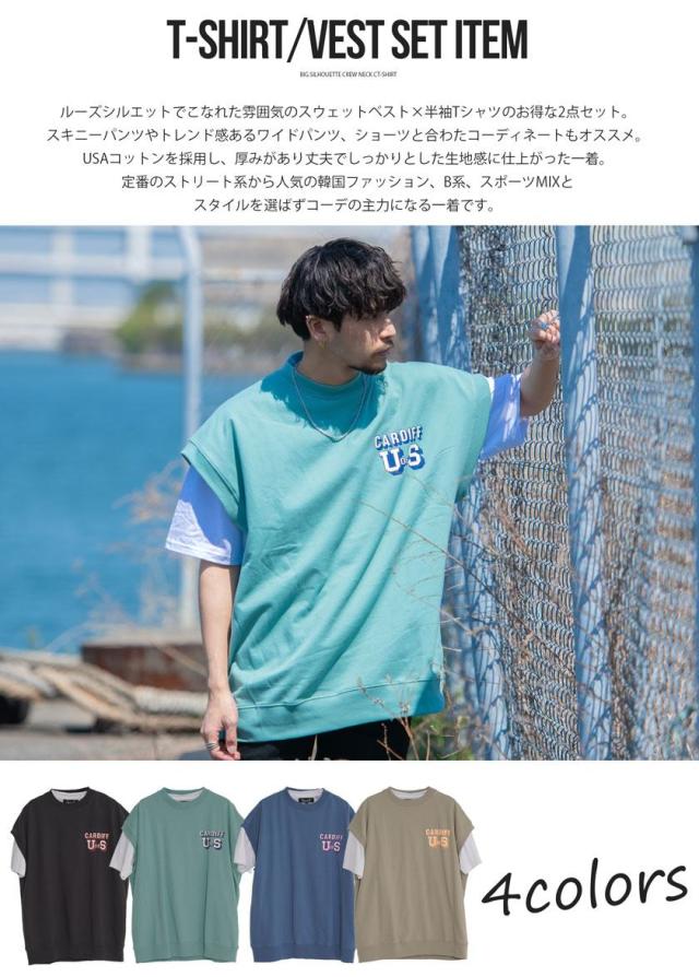 Tシャツ メンズ ベスト USAコットン 2枚セット 大人 ブランド 重ね着 レイヤード ルーズシルエット トップス 半袖 綿100%裏毛 スウェット M L クルーネック カジュアル ファッション ストリート ストリート系 ストリートファッション 韓国 韓国系 韓国ファッション 下北 下北系 下北沢 ユニセックス ブルー ベージュ ブラック ターコイズ 春 夏 CavariA キャバリア 東京 プレゼント 贈り物 ギフト配送について