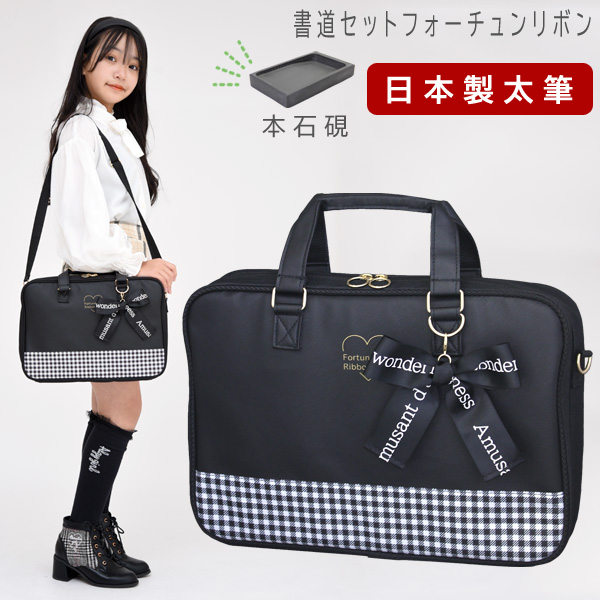 本石硯 書道セット 小学生 女の子 日本製 特製太筆 習字セット フォーチュンリボン