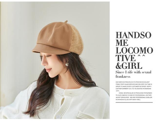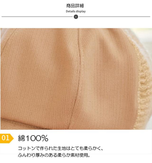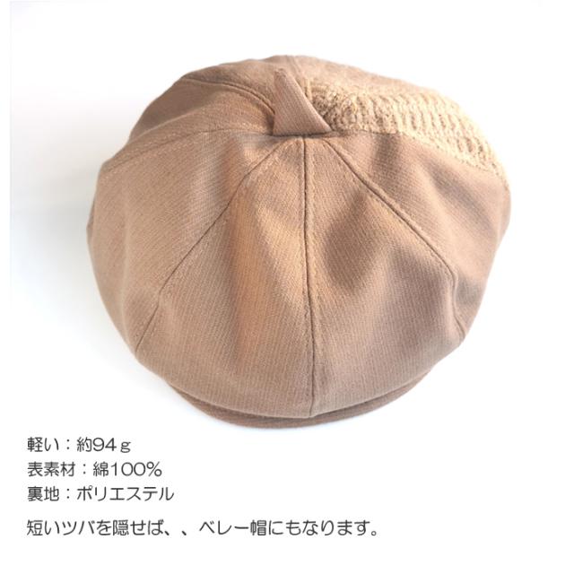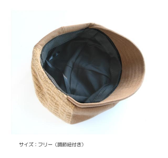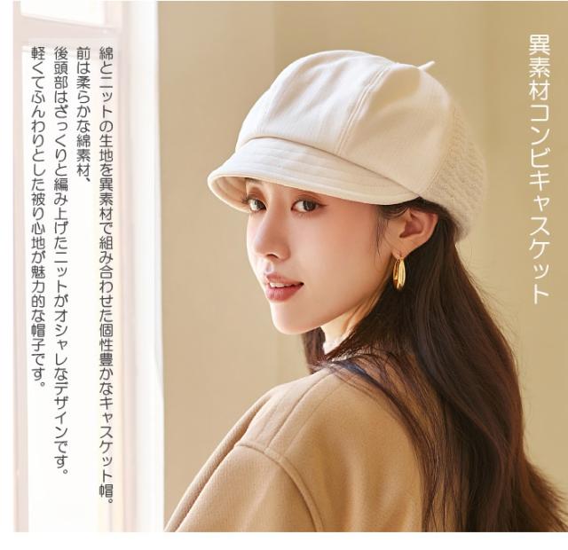 綿とニットの生地を異素材で組み合わせた個性豊かなキャスケット帽。