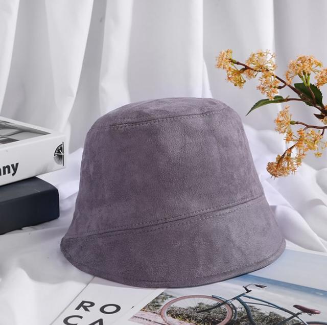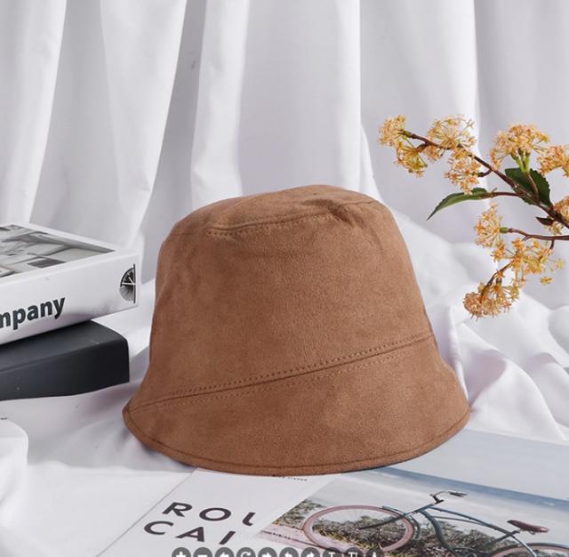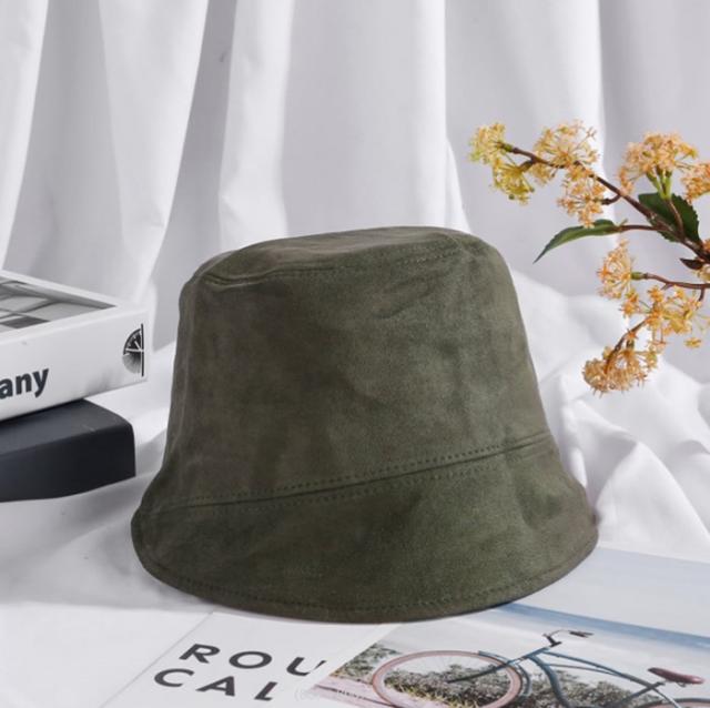 少し上品な色合いのスエードを使ったバケットハットは