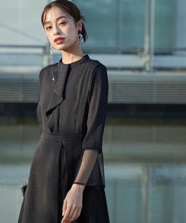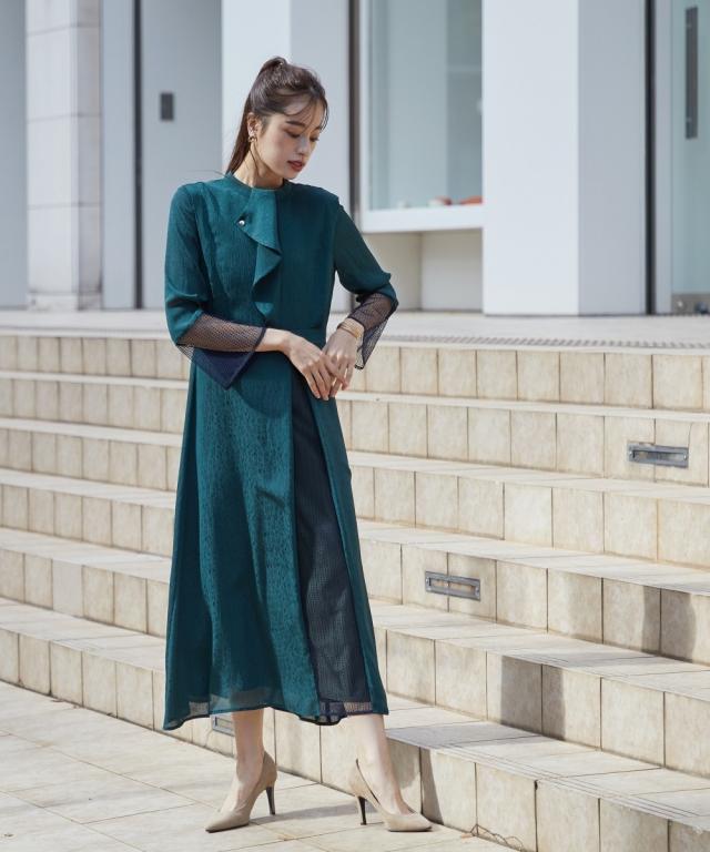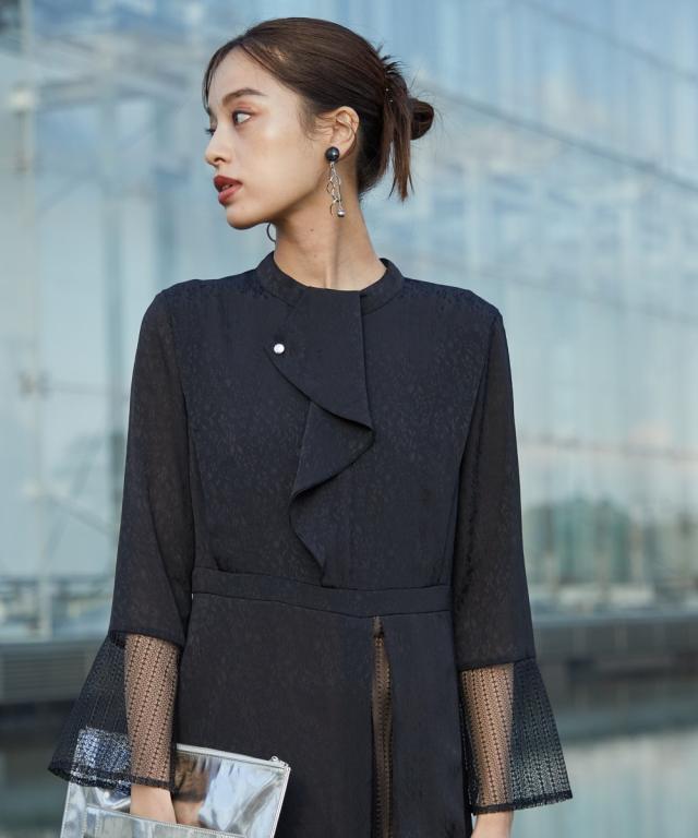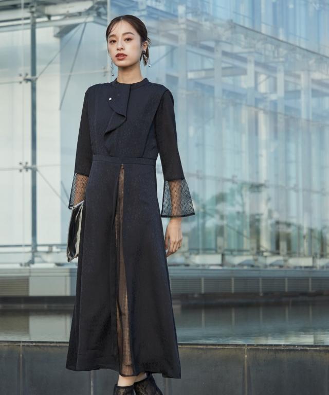 【結婚式・パーティー・オケージョンドレス】<Callarus>Front Deign Lace×Jacquard Onepiece Dress<大きいサイズ有>