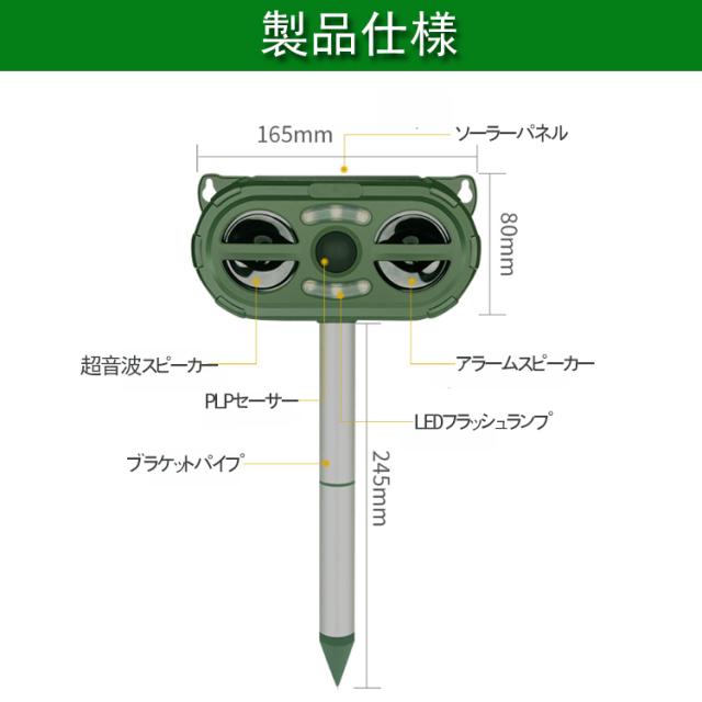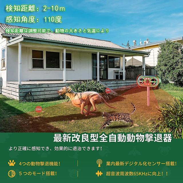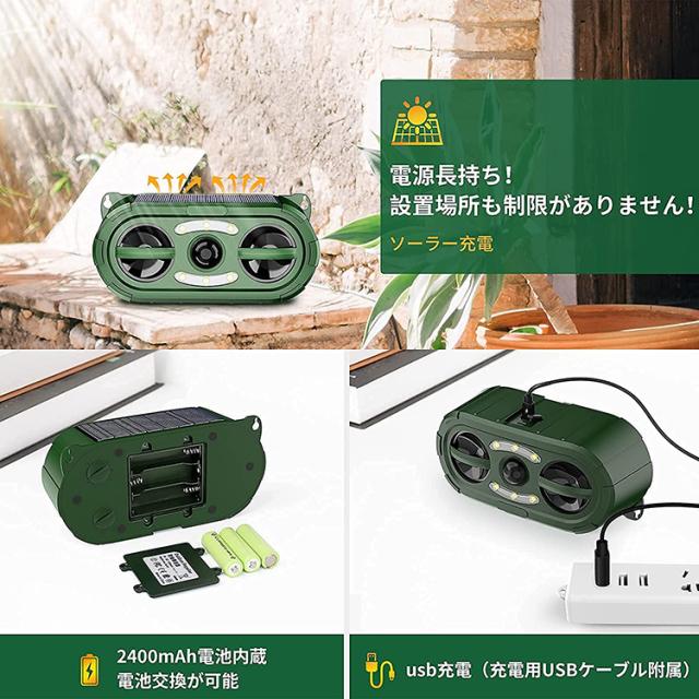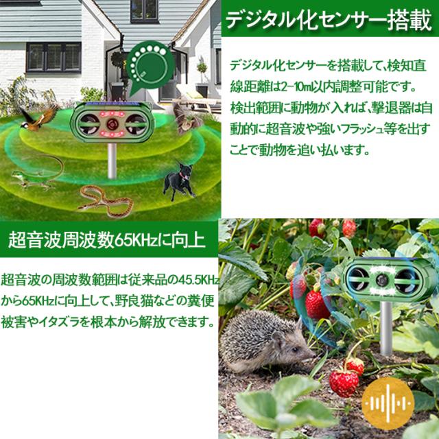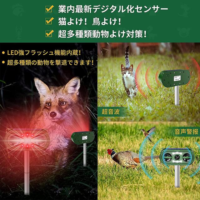 2021改良版 猫よけ対策 超音波 スズメ撃退 ネズミ 超音波 コウモリよけ対策 鳩よけ対策 糞便被害対策 赤外線センサー ソーラー充電&USB充電