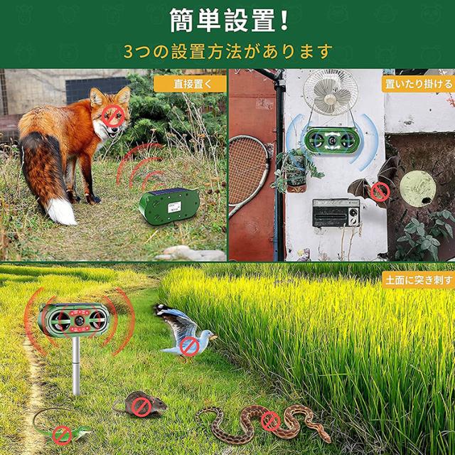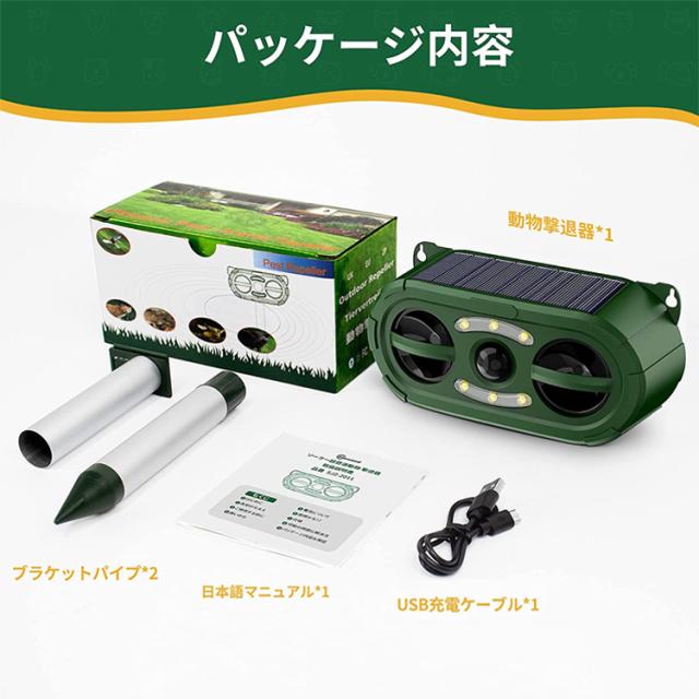 猫よけ対策 スズメ撃退 超音波動物撃退器 ネズミ避け コウモリよけ対策 鳩よけ対策 糞便被害対策 赤外線センサー ソーラー充電&USB充電