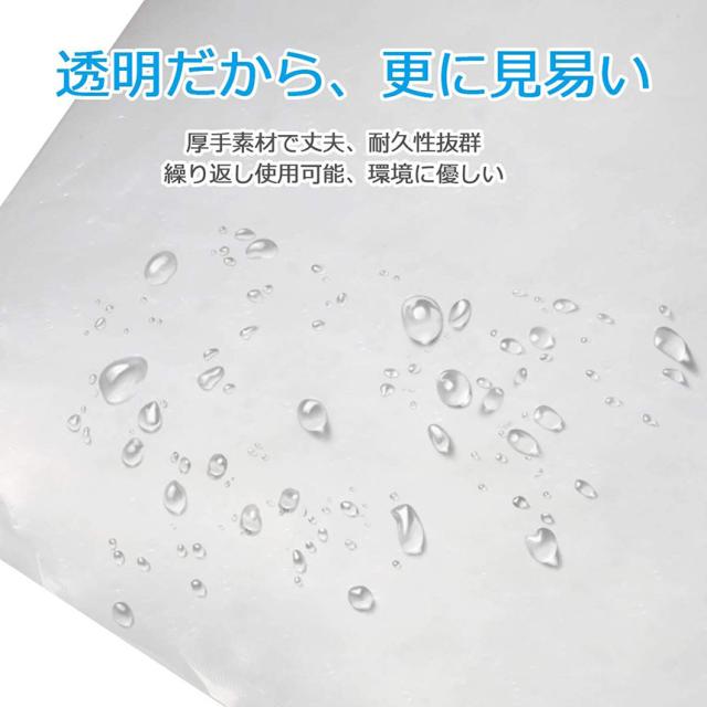 【厚手で透明 安心使用感】エアコンカバーは使い勝手が良く、耐久性が十分な0.08mm仕様。透明度の高い高級樹脂材を使用しております。耐久性抜群ですので、何度でもご使用いただけます。Mサイズ:外周250cm 幅90cm、Lサイズ:外周350cm 幅96cmエアコンに対応しています、小さなエアコンにもご使用いただけます。美掃業者、エアコン洗浄業者様にもおススメです!