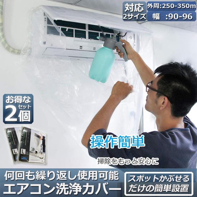 エアコン洗浄カバー 壁掛け用 エアコン掃除カバー 2サイズ 2枚セット クリーニング 洗浄 掃除 シート 壁掛用 透明 汚水の飛び散り防止 繰り返し 外周250-350cm 幅90-96cmまで対応 家庭用 業務用