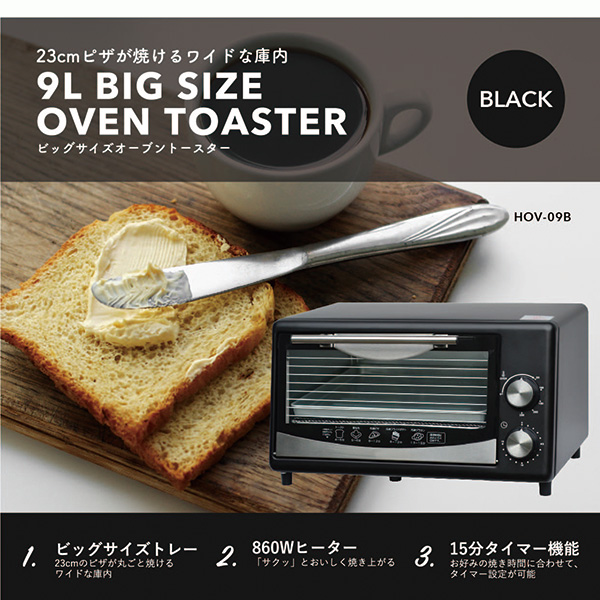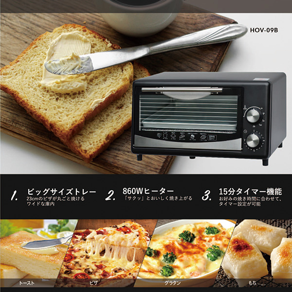 トースター おしゃれ オーブントースター パン 一人暮らし 860W 火力強め 安全装置付 家電 キッチン 調理 朝食 HOV-09B