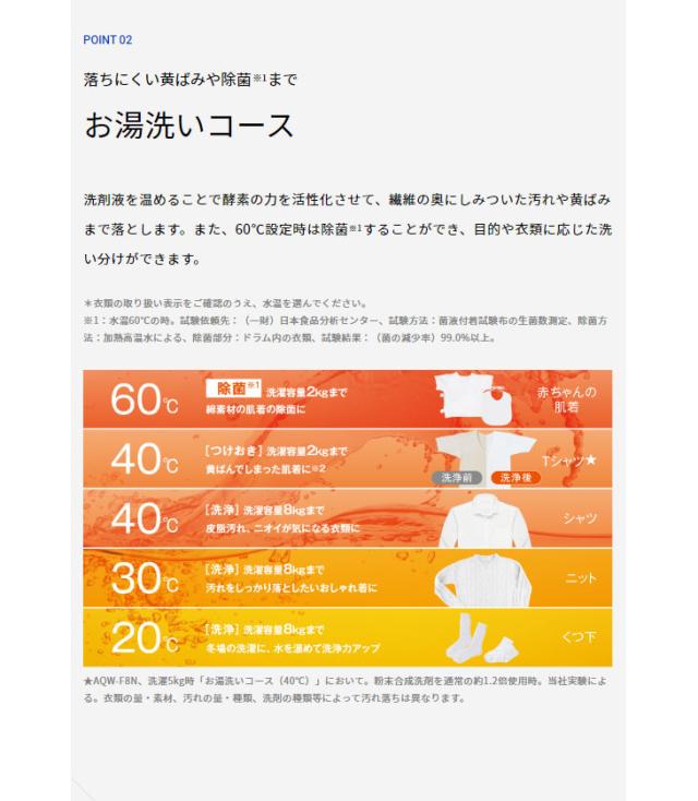 ・落ちにくい黄ばみや除菌まで「お湯洗いコース」