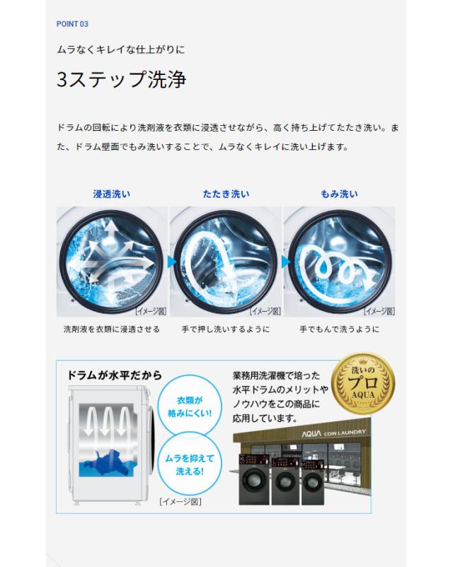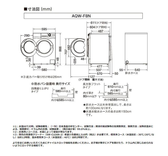 | 【まごころ配送】【標準配送設置無料!】AQW-F8N-W(ホワイト) ドラム式洗濯機【洗濯・脱水容量:8.0 Kg】 スペック情報 | |