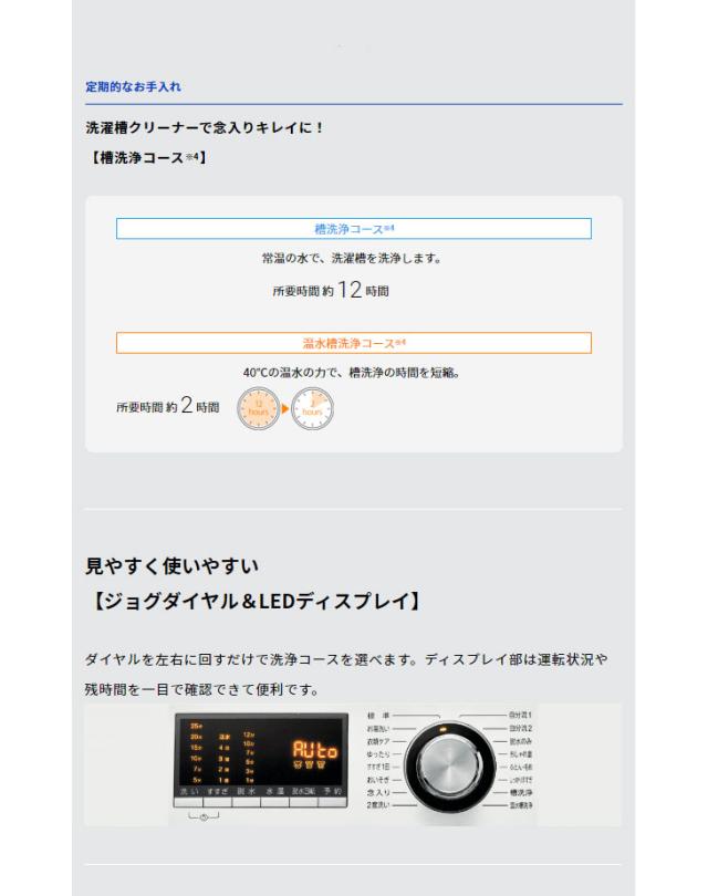 | 運転音(洗い/脱水) | 約32dB/約44dB |