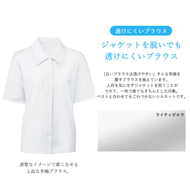 事務服 ブラウス レディース 半袖 制服 シャツ nuovo 春夏 秋 FOLK【送料無料】白 医療事務 受付 接客 冠婚葬祭 セレモニー フォーマル オフィス スーツ シンプル カッターシャツ ワイシャツ 透け防止 おうちで洗える agesugi_sfa
