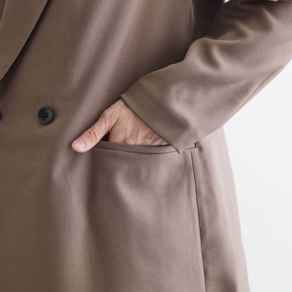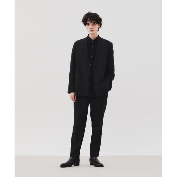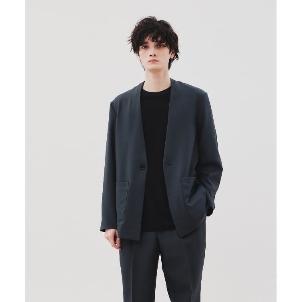 ノーカラータイプは、カーディガンのようなイメージで着用でき、ラフなキレイめスタイルを表現できます。