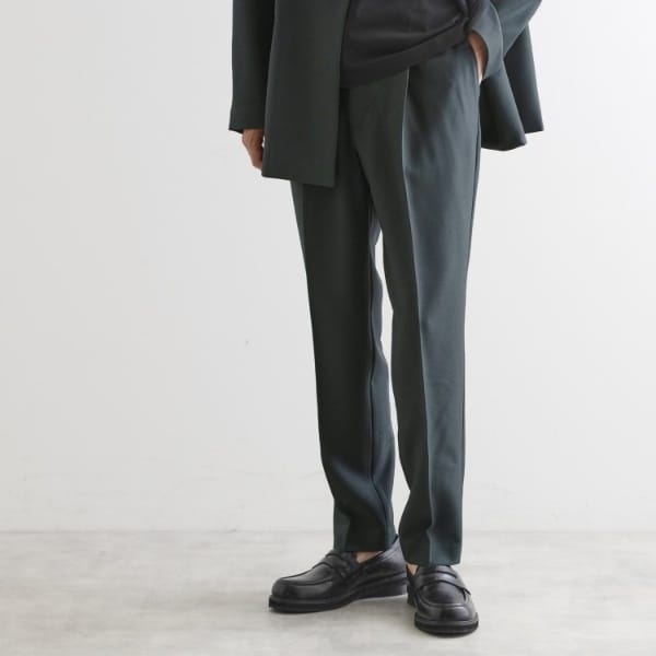クリーンでシンプルなスラックスなため様々なアイテムと相性が良く、汎用性の高いデザインパンツです。