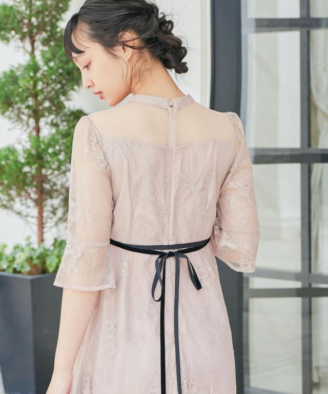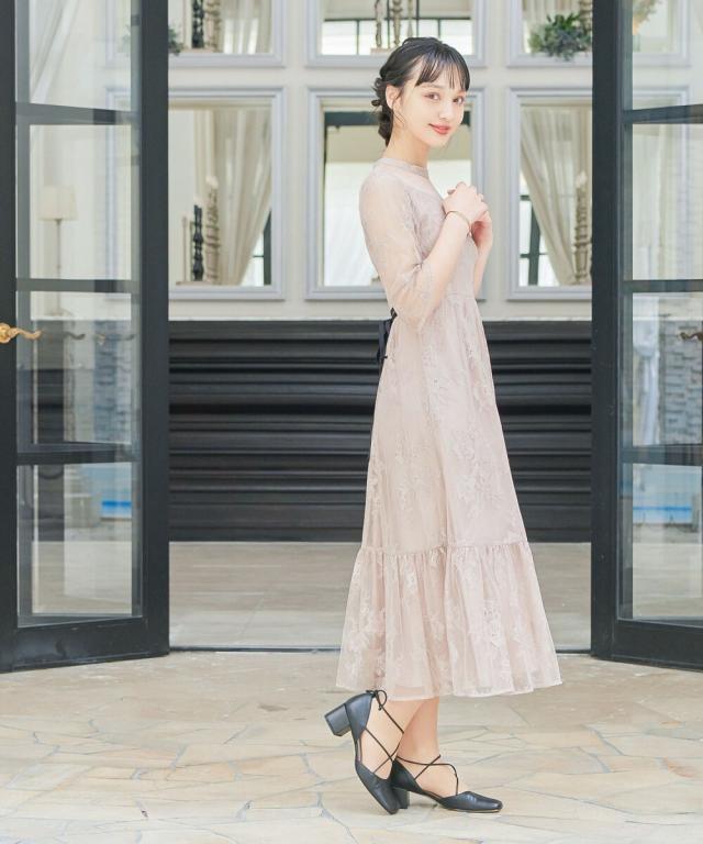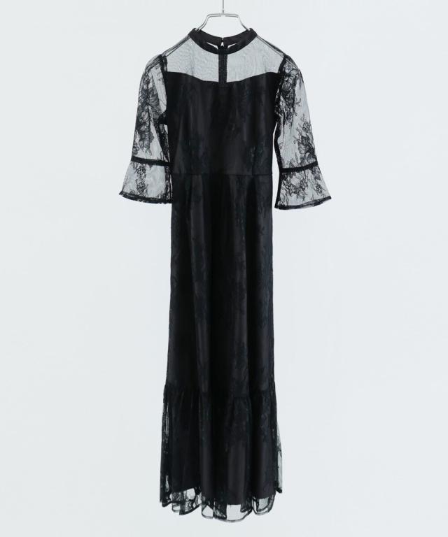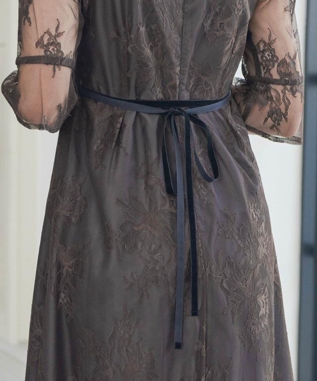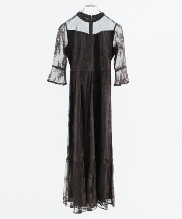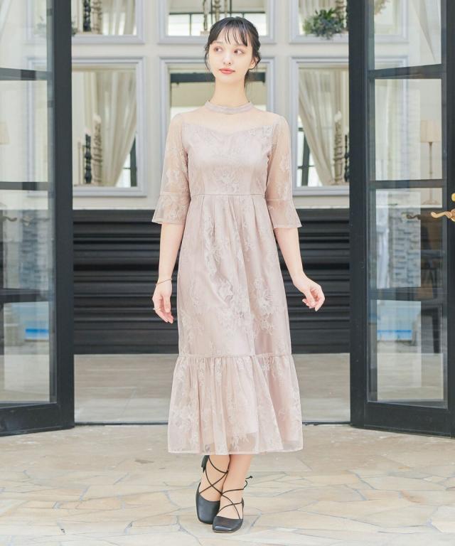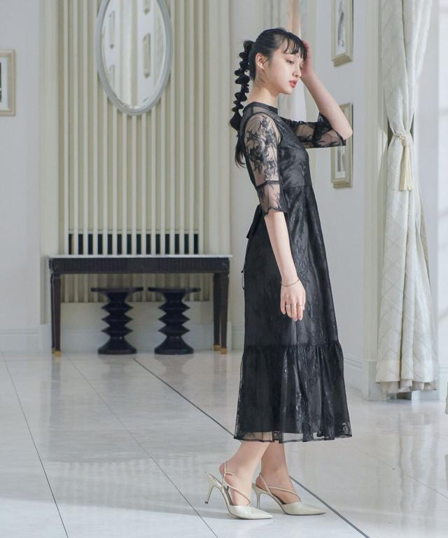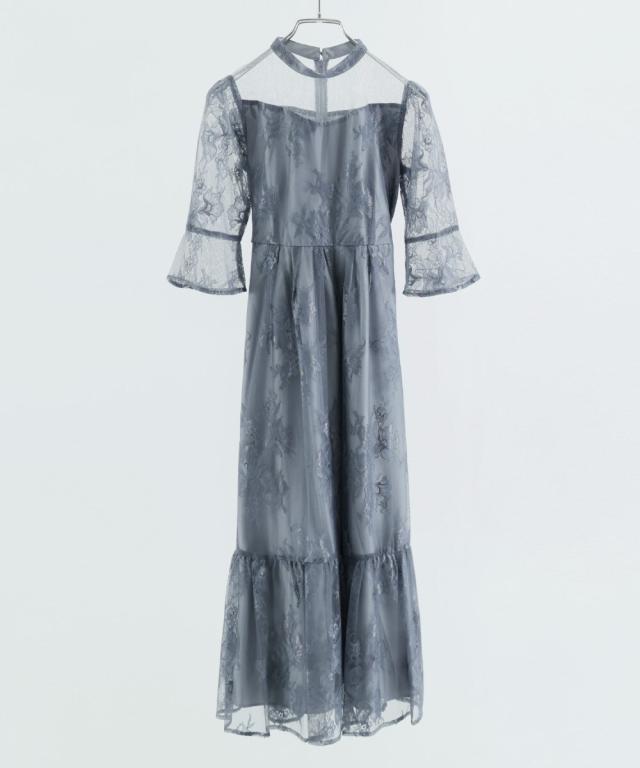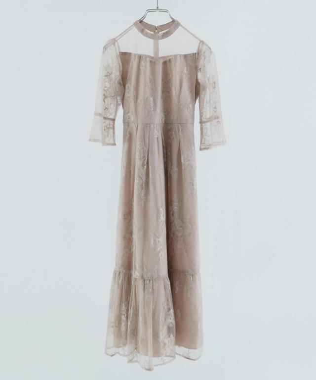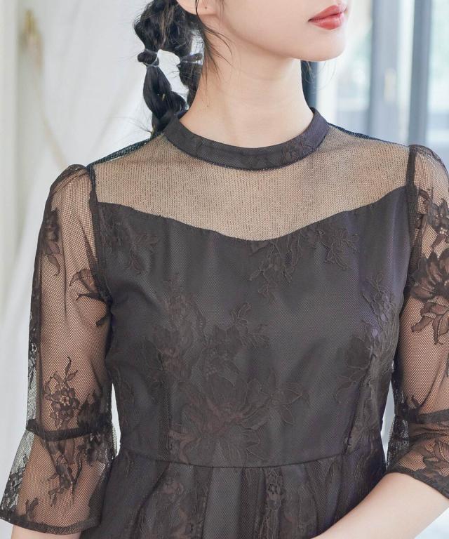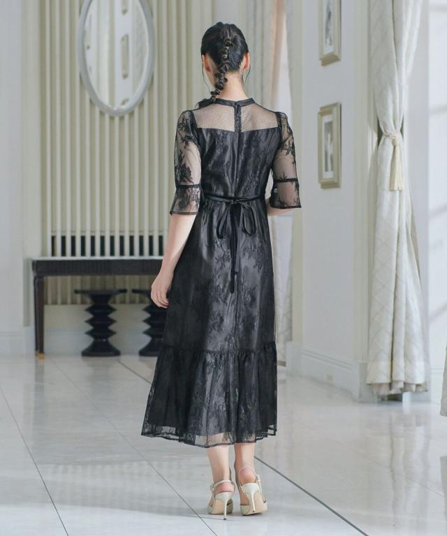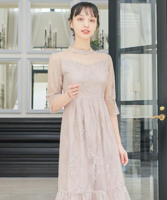 niana ニアナ デコルテの透け感が美しいラメチュールとレースを組み合わせたワンピースドレス。
