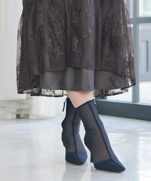 ■素材:表地レース:ナイロン100%、チュール:ポリエステル100%、裏地:ポリエステル100%