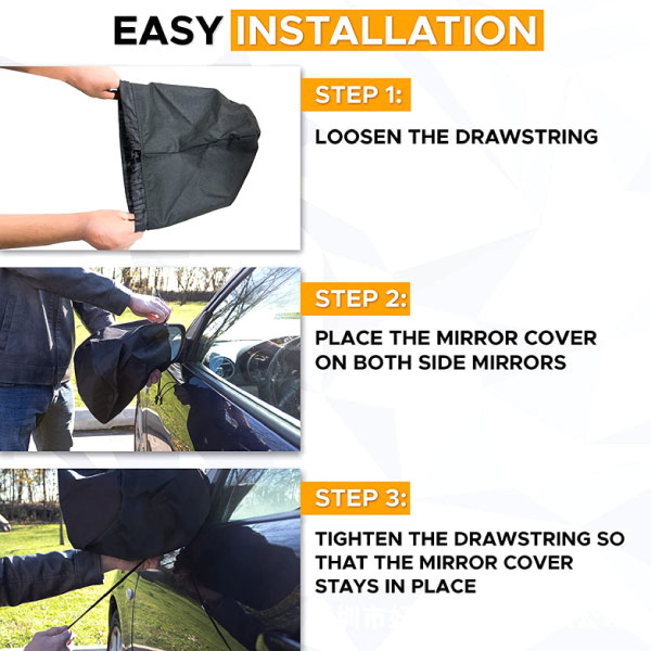 ミラーに被せて紐を締めるだけで取付簡単です。
