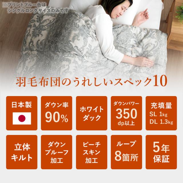 羽毛布団 シングルロング 90% 日本製 「 羽毛掛UMO9002 」 約150×210cm 掛布団 防臭 抗菌 防カビ 移動防止 立体キルト パワーアップ 加工 掛ふとん 布団 ふとん 羽毛 暖かい 軽い ふわふわ あったか 5年保証 新生活 秋 冬