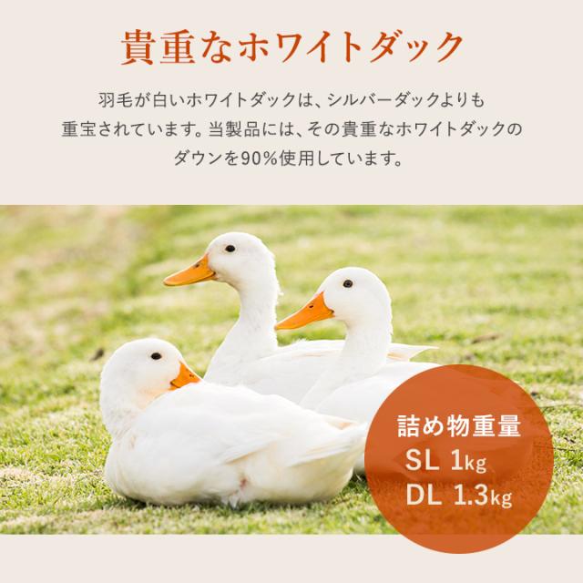 | 【シングルロング】 側生地=ポリエステル85%、綿15% 詰め物=ホワイトダックダウン90%、フェザー10% 1.0kg 【ダブルロング】 側生地=ポリエステル85%、綿15% 詰め物=ホワイトダックダウン90%、フェザー10% 1.3kg |