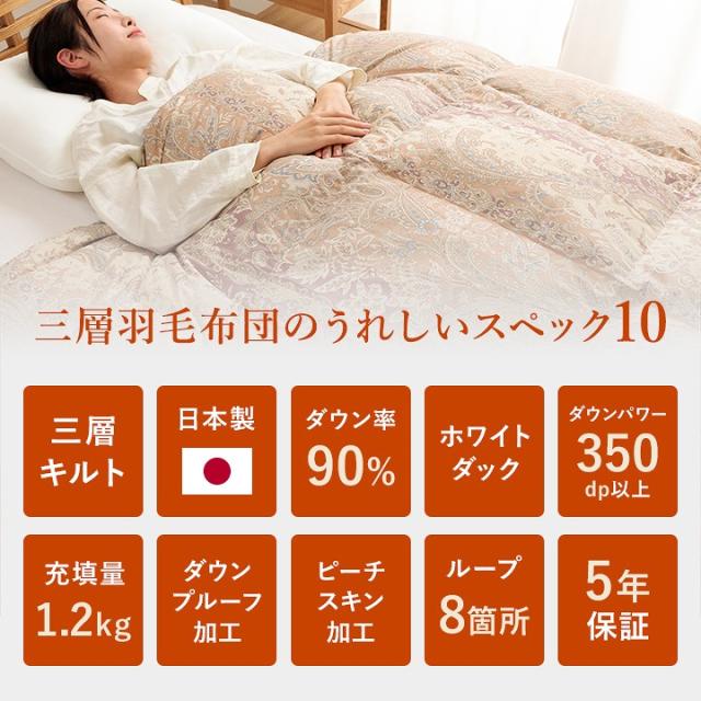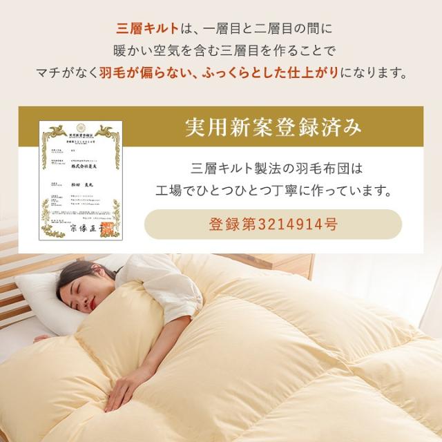 三層羽毛布団 シングル 日本製 90% 掛け布団 シングルロング 掛布団 羽毛布団 防臭 抗菌 防カビ 移動防止立体キルト パワーアップ 加工 掛ふとん 布団 ふとん 羽毛 暖かい 軽い ふわふわ あったか 5年保証 3UMO9010