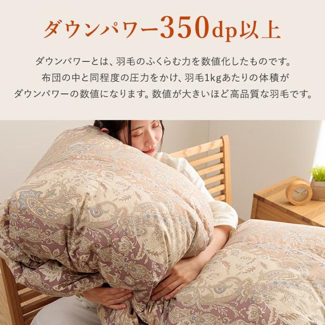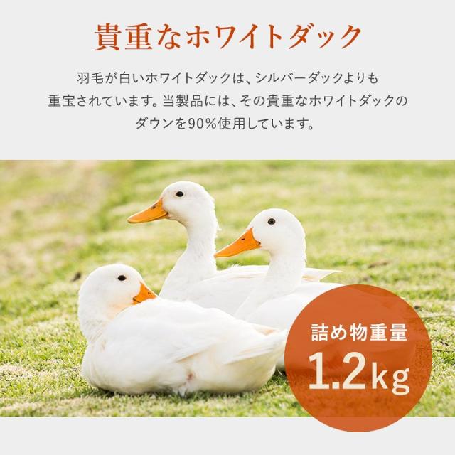 | 側生地=ポリエステル85%、綿15% 詰め物=ホワイトダックダウン90%、フェザー10% 1.2kg |