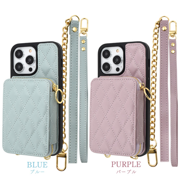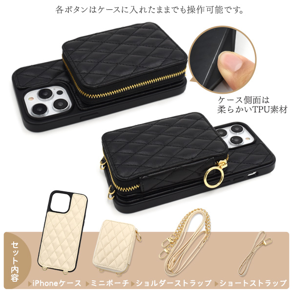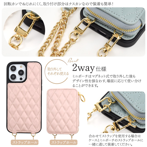 スマホショルダー iPhone14ProMax ショルダーストラップ付き スマホケース キルティング ショルダーケース おしゃれ 肩掛け iPhoneケース ミニポーチ付属 装着簡単 斜め掛け おしゃれ スマホカバー ベーシック ストラップホール付き 背面保護 カジュアル SoftBank au docomo
