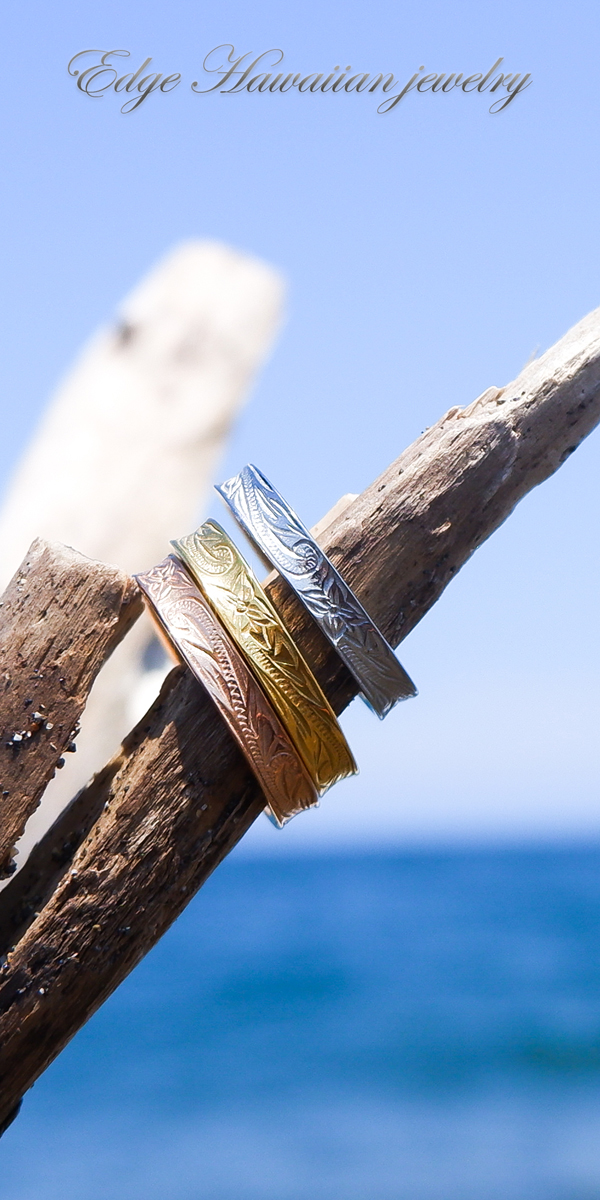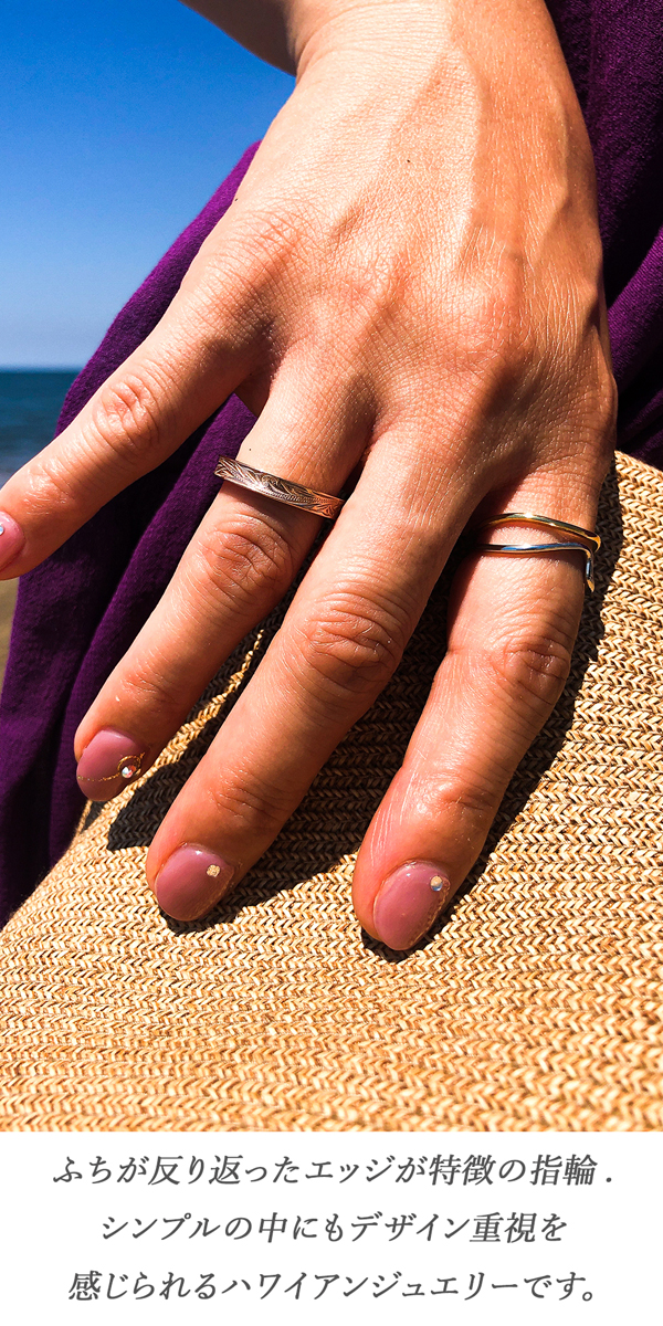 ハワイアンジュエリー リング 指輪 細め プルメリア スクロール ふち反りデザイン 記念日 誕生日 プレゼント ギフト インスタ